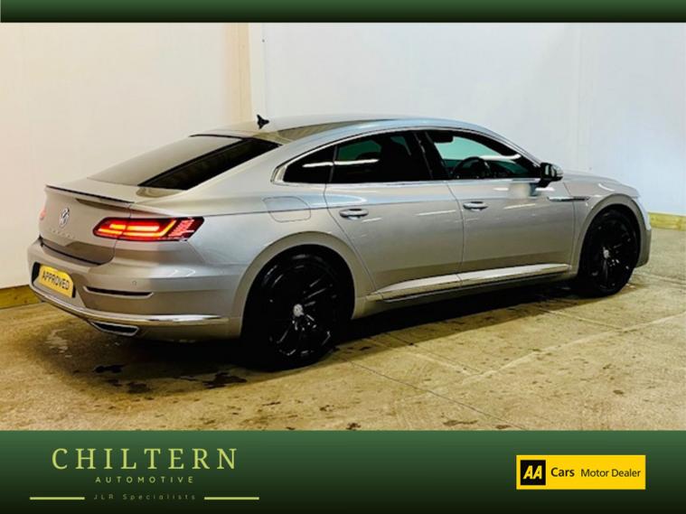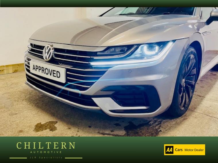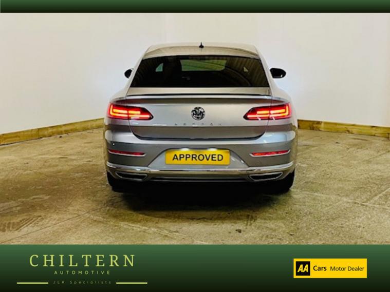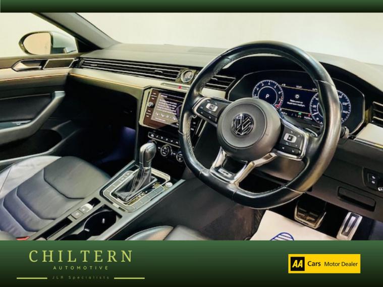 A beautiful Volkswagen Arteon 2.0 TSI R-Line Auto that has a comprehensive service history, a long MOT that expires on 19th September 2026, and will come with a three month warranty. A lovely example presented in metallic Pyrite Silver, wrapped around a beautiful Ebony leather interior, and sitting on spotless 19 black alloy wheels, the car is in exceptional condition throughout. FULL LEATHER INTERIOR TRIM, FULL DIGITAL INSTRUMENT CLUSTER, HEATED FRONT SEATS, AIR CONDITIONING, DAB RADIO WITH MEDIA CONNECTIVITY, AUX-IN, & USB CONNECTION, BLUETOOTH HANDSFREE, SAT NAV, CRUISE CONTROL, FRONT & REAR PARKING SENSORS, AUTOMATIC HEADLIGHTS, AUTOMATIC WIPERS, ELECTRIC WINDOWS, ELECTRIC MIRRORS, TRIP COMPUTER. This vehicle has undergone our full Health Check. BUY WITH CONFIDENCE. We are able to provide a LIVE video tour of any vehicle with an allocated sales representative, or send you a pre recorded virtual tour. DELIVERY SERVICE AVAILABLE - Please contact us for an estimate. For further information on this car, or to request a video tour, please contact us and one of the team will be delighted to help.