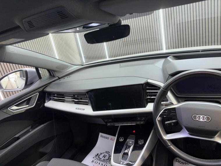This 2022 Audi Q4 e-tron Sport is a superb example, having been owned by only one person since new. This electric SUV combines sophisticated Audi design with the practicality of a large boot, making it an excellent choice for everyday driving and longer journeys. It features a 55 kWh battery offering a maximum range of 217 miles when new, and benefits from LED headlights with daytime running lights for enhanced visibility. Inside, youll find comfort features like heated front seats and comfort auxiliary air conditioning, alongside a Bluetooth interface for seamless connectivity. The Q4 e-tron Sport is designed for convenience and efficiency. Charging at home with a 7kW charger takes approximately 7 hours and 30 minutes for a full charge, while rapid public charging can take you from empty to 80% in just 32 minutes. Rear parking sensors are included to assist with manoeuvring, adding to the ease of ownership. These features, combined with its electric powertrain and Audis renowned build quality, position this Q4 e-tron Sport as a compelling option for those seeking a premium electric vehicle experience.