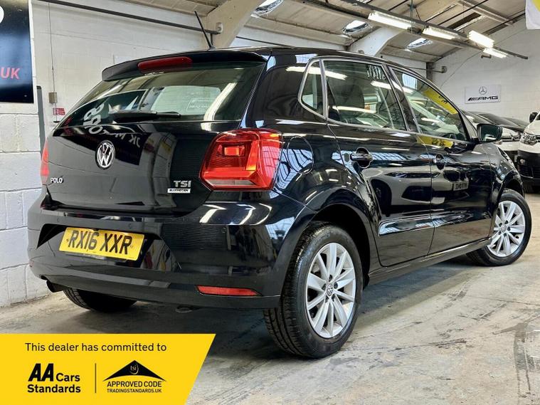 Ready to drive away today Volkswagen Polo 1.2 TSI BlueMotion Tech SE, 2 owners from new, great service history records including recent service and front brake disks and pads. Finished in metallic black, alloy wheels, front and rear parking sensors, reverse camera. Interior is a comfortable place to be with plenty of features. Park Pilot, cruise control, touchscreen multimedia, Bluetooth connectivity, multifunction steering wheel, ambient lighting. 2 keys, buy with confidence from an award winning, AA Approved dealership with a variety of warranty products available. Viewing available seven days a week by appointment (evening and weekends available), nationwide delivery. Same day finance decisions in house at competitive rates, nil deposit options, please inquire with a simple call to drive away today. Drive away insurance, part exchange welcome, top prices paid. Member of the Motor Trade trading standards and motoring ombudsman code of practice.