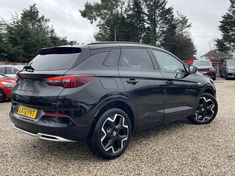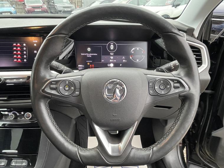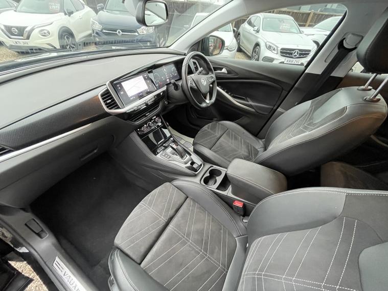 Essex Car Fleet is delighted to present this black 2022 (72) Vauxhall Grandland 1.2 Turbo Ultimate Automatic, a superbly specified SUV that combines bold styling, advanced technology and premium comfort. With just 24, 503 miles, this Ultimate model sits at the top of the Grandland range and it really shows. Finished in sleek black with contrasting black roof and high-gloss black detailing, this Grandland looks every bit the modern, upmarket SUV. The exterior is enhanced by 19in diamond-cut bi-colour alloy wheels, IntelliLux LED Pixel headlights, LED fog lights, dark tinted rear windows, black roof rails, and silver-effect skid plates, giving it a confident and sporty stance on the road. Inside, the cabin feels refined and high-tech. Youre greeted by a 12in digital instrument cluster and digital central touchscreen with Multimedia Navi Pro and satellite navigation, delivering a crisp, intuitive driving experience. Comfort is outstanding thanks to the AGR-approved ergonomic active heated sports front seats, dual-zone electronic climate control, ambient lighting, heated steering wheel and windscreen (Winter Pack), and wireless phone charging. The power tailgate with hands-free foot sensor adds everyday convenience. This Ultimate specification is packed with advanced safety and driver assistance features, including 360-degree panoramic parking camera, advanced park assist, front and rear parking sensors, automatic emergency braking with pedestrian detection, lane keep assist, blind spot alert, speed sign recognition, driver drowsiness alert, and highway integration assist. Add to that keyless entry and start, adaptive cruise functionality, and paddle shift, and you have a car that makes every journey effortless. Powered by the smooth and efficient 1.2 Turbo petrol engine paired with an automatic gearbox, this Grandland delivers refined performance with excellent fuel efficiency, ideal for both town driving and long motorway journeys. A fantastic opportunity to own a top-spec Vauxhall Grandland Ultimate with premium features throughout, strong road presence and low mileage, this is a standout SUV that ticks all the right boxes. With our location based in Battlesbridge in Essex, Enjoy haggle-free buying experience where you can drive away the same day of prior arranged appointment. Please see our website for details. Call now or enquire online for a no-obligation test drive, finance quote or part-exchange valuation, 5 Star Dealer, Finance Available, Delivery Available, Part exchange Available, all cars are supplied with a 3 months warranty, 12 months MOT. Please call all a member of the team on 01268372176 and we will be delighted to help you move your enquiry forward 5 Star Dealer, Finance Available, Delivery Available. Our preparation team have inspected to the highest level possible for the age and mileage of vehicle, You can rest assured your car has been cared for to our highest Standard. With our location based in Battlesbridge in Essex you can enjoy a haggle-free buying experience where you can drive away the same day if prior arranged appointment. 150 admin fee applies, please see our website for details.