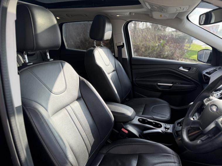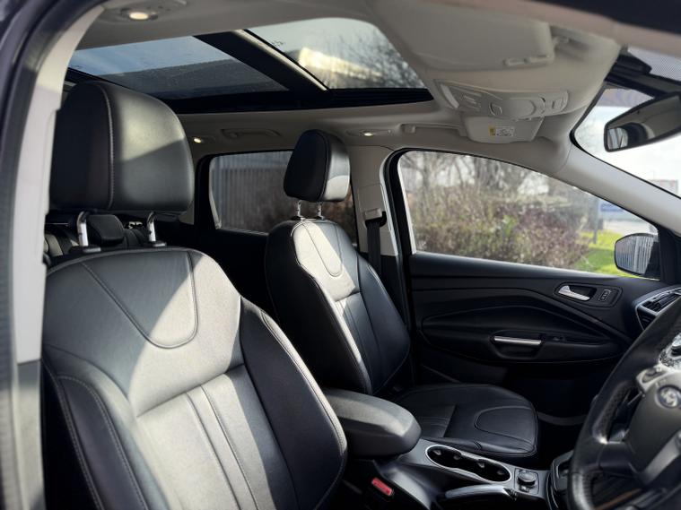 A refined and capable compact SUV designed for everyday versatility and confident driving. Powered by an efficient 1.6-litre EcoBoost turbocharged petrol engine, the Ford Kuga delivers a balanced blend of responsive performance and strong economy, making it equally suited to urban commuting, long motorway journeys and family use. The Titanium X specification elevates this Kuga with premium trim and modern technology throughout, offering a spacious, comfortable cabin finished with quality materials and intuitive controls. On the inside, advanced infotainment, connectivity and driver-assistance features create a confident and engaging driving experience, while thoughtful storage and seating flexibility enhance practicality for daily life. With its elevated driving position, smooth handling and secure feel on the road, this Ford Kuga represents a smart choice for buyers seeking a stylish SUV with refined dynamics and real-world usability. Euro 6 compliant and engineered for efficiency, it combines everyday comfort with the capability and practicality expected from a modern SUV. Available now at Joseph David Simm Ltd. Part exchange welcome. Finance options available.