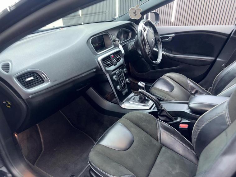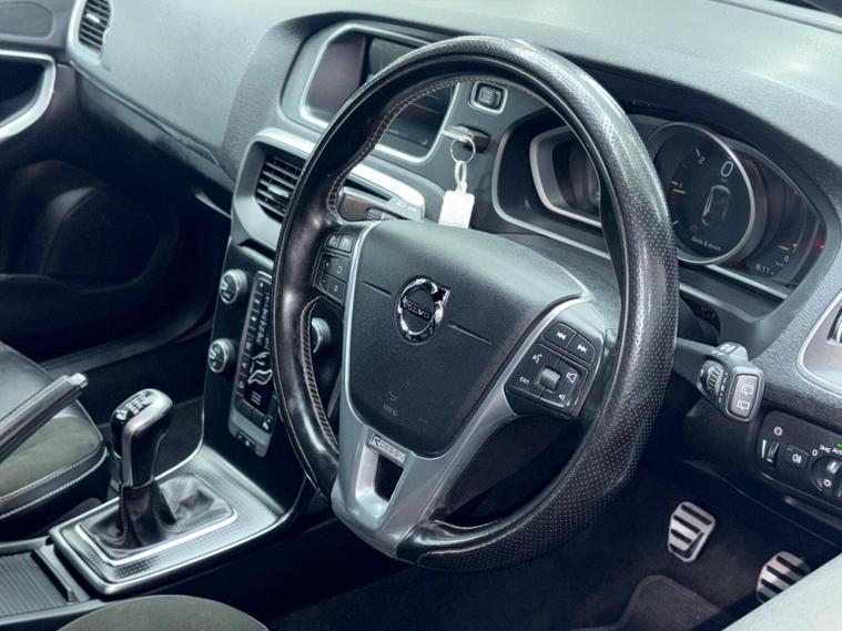 This 2016 Volvo V40 D2 R-Design Nav Plus offers an exceptional blend of style and efficiency, boasting a remarkable 79 mpg fuel economy. This Euro 6 compliant 2.0L diesel engine is paired with the R-Design Nav Plus trim, enhancing its appeal. Keyless Drive allows for effortless entry and starting with the Personal Car Communicator, while the Xenium Pack adds a fixed panoramic sunroof, front and rear parking sensors, and a rear camera for enhanced convenience. Intellisafe Pro and Intellisafe Assist further elevate the driving experience with Adaptive Cruise Control and Blind Spot Assistance, ensuring a safer and more relaxed journey. The V40 D2 R-Design Nav Plus stands out with its impressive fuel economy of 79 mpg, demonstrating its efficiency compared to other vehicles in its class. Its low CO2 emissions and low insurance group also contribute to lower running costs. The acceleration from 0-60mph in 9.8 seconds provides a responsive drive, and the large boot space ensures practicality for everyday needs.