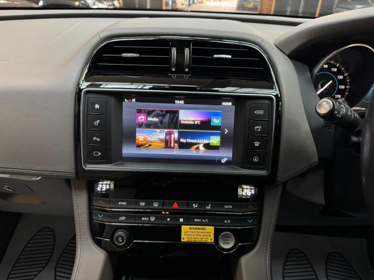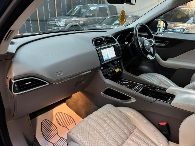 This 2017 Jaguar F-PACE D180 Portfolio boasts a full service history and a clear vehicle history check, offering excellent provenance for its 69, 310 miles. This Euro 6 compliant model features a 2.0L diesel engine and a substantial towing weight of 2400 kg. Inside, youll find luxurious 20 way seats with driver and passenger memory and lumbar support, complemented by a 4-way electric lumbar adjust. The Portfolio trim also includes the Touch Pro Navigation Pack with a 380w Meridian Digital Sound System and a sliding panoramic roof with an opening sunroof, creating an open and connected cabin experience. Experience impressive performance with a 0-60mph acceleration of just 8.0 seconds, while enjoying remarkable fuel economy of 55 mpg, highlighting its efficiency compared to similar vehicles. This F-PACE also offers low CO2 emissions and generous boot space, making it a practical choice for various needs. With an MOT valid until May 2026 and a 6 month warranty included, this Jaguar F-PACE D180 Portfolio presents a compelling package of style, performance, and practicality.