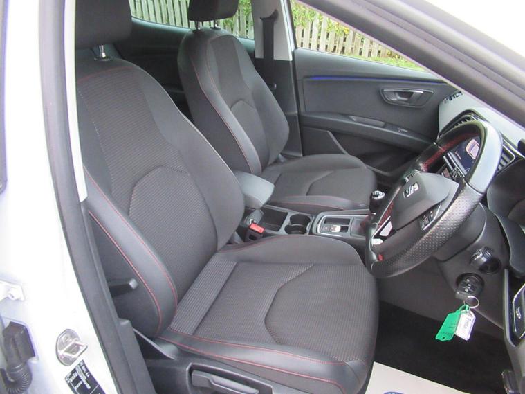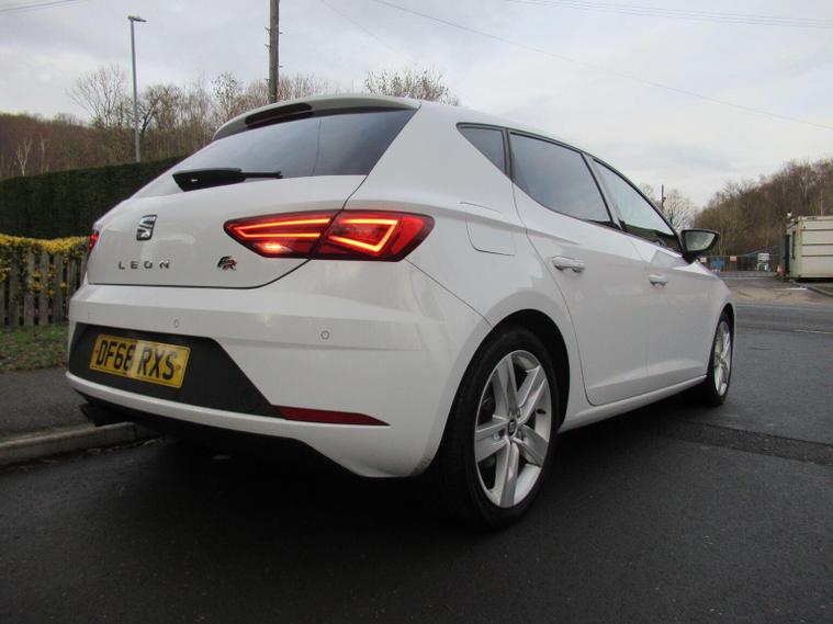 Discover this exceptional 2019 SEAT Leon TSI EVO FR, boasting remarkably low mileage for its year at just 40985 miles. This Euro 6 compliant 1.5 litre petrol model, presented in the sporty FR trim, offers a compelling blend of style and practicality. Its advanced Full LED headlights provide excellent visibility, while front and rear parking sensors make manoeuvring effortless. Inside, youll appreciate the convenience of dual zone climate control and automatic headlights, part of the Convenience Pack Plus. Stay connected on the go with SEAT Full Link, seamlessly integrating your smartphone via Mirror Link, Apple CarPlay, and Google Android Auto. This SEAT Leon stands out with its impressive practicality, featuring a large boot space perfect for all your needs. Its low CO2 emissions contribute to a more environmentally conscious drive, and with an acceleration of 0-62mph in just 9.4 seconds, it offers a responsive performance. These highlights demonstrate how this Leon provides a superior driving experience compared to other vehicles in its class, combining efficiency, technology, and engaging performance.
