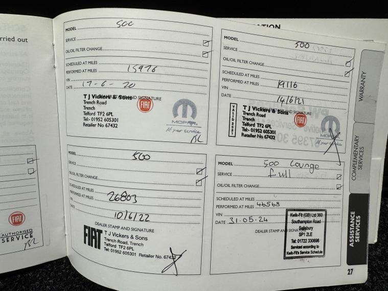Peak Performance Cars are a family-run business with over 35 years experience in the motor trade. We are proud of our reputation for quality and customer care. Please read our Google reviews and purchase with complete confidence. We are also an AA Approved Dealership. Fiat 500 1.2 Lounge , Cappellini Blue | DL17FFB, We are delighted to offer this stylish and sporty Fiat 500 Lounge, finished in the striking Cappellini Blue paintwork with contrasting Cream half-leather sports seats, a fantastic colour combination. It has only had the 1 Owner from new and you can tell its been truely loved as it really is a beauty, Powered by the reliable 1.2 petrol engine, this car delivers a smooth, enjoyable drive with excellent fuel economy, making it ideal for both city driving and longer journeys. Condition & History, 55, 166 miles from new, Full Service History - serviced annually since new, Last serviced: June 2025 at 52, 518 miles, Presented in excellent condition and a real credit to its previous owner, Specification Highlights, Cream half-leather sports seats, Panoramic Sunroof, Saterlite Navigation, Air conditioning, Flat-bottom multifunction steering wheel, DAB radio, Bluetooth hands-free system, Xenon headlights, Rear parking sensors, 15 Alloy Wheels, Electric windows, Electrically adjustable & heated mirrors, AUX & USB connectivity, Traction control, Plus much more, All manuals and documentation present, 1 key, 3 months warranty, 12 months AA breakdown cover, MOT valid until 16/06/2026, Indoor showroom, Walk-around video available, VIEWINGS STRICTLY BY APPOINTMENT ONLY, Contact Mark: 01562211479, Peak Performance Cars have been supplying hand-selected quality vehicles since 1999. We pride ourselves on our attention to detail and exceptional customer service. Payments accepted via bank transfer and all major debit & credit cards. Vehicle registered: 16/06/2017