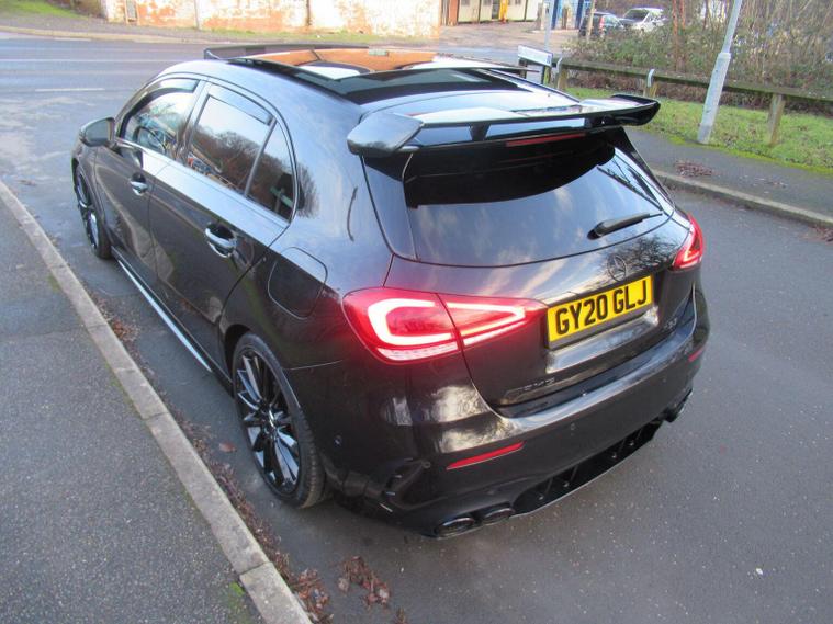 This 2020 Mercedes-Benz A Class A35 AMG is presented with a full 12 months MOT for your peace of mind. This Euro 6 compliant, four wheel drive model boasts a powerful 2.0L petrol engine, offering an exhilarating 0-62mph acceleration in just 4.7 seconds. The AMG trim is further enhanced by the Premium Plus package, which includes striking LED High Performance Headlamps with integrated daytime running lights, a panoramic opening sunroof, and heated front seats with memory function for ultimate comfort. Youll also benefit from the convenience of keyless entry, dual Bluetooth interface with two USB Type C ports, and a 100W Mercedes-Benz branded sound system. The A35 AMG variant stands out with its impressive performance figures, demonstrating its superior acceleration compared to other vehicles in its class. Parking is made effortless thanks to the front and rear parking sensors, complemented by a 180 degree reversing camera with guidelines. Inside, the spacious boot offers ample room for all your luggage, making it a practical choice for everyday use and longer journeys alike.