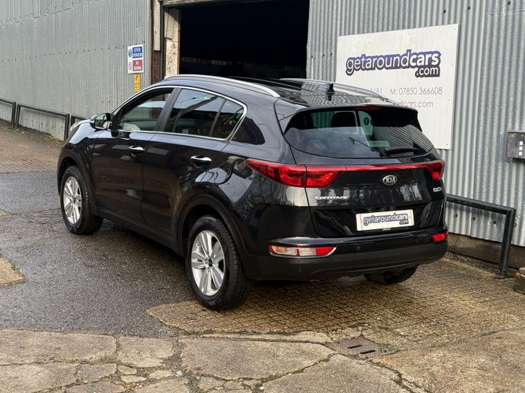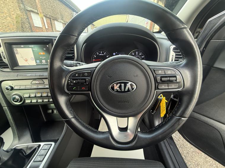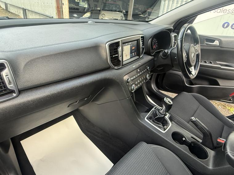 getaround in this immaculate 1.6 petrol Sportage from Kia. This 6-speed manual 2 model looks good finished in metallic black with contrasting dark cloth interior. It has a good spec that includes Colour Sat-Nav, DAB Radio with hands-free phone prep, reversing camera, cruise control, lane assist and air-conditioning. The car has a comprehensive service history that is made up of some 8-dealer stamps and a new MOT. It comes with the owners book pack, fully stamped service booklet, two keys, locking wheel nut and clear HPi certificate. Phone, text or email for an appointment to view this sought after ulez compliant SUV soon.