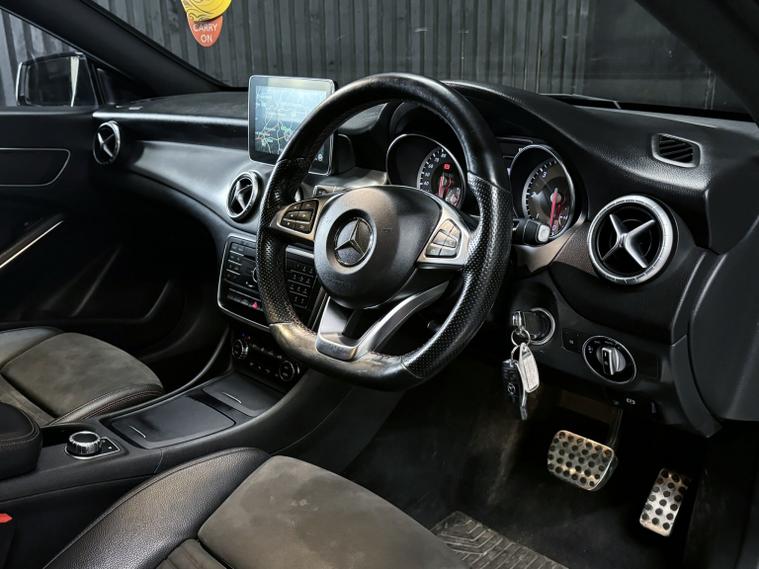 Motorport are excited to offer a 2016 MERCEDES-BENZ CLA Diesel 2.1 model, finished in silver colour. This vehicle is ULEZ Compliant, ensuring it meets the required emissions standards for driving in London. As a facelift model, it benefits from updated features and styling. With only 2 former keepers from new, this car has been well-maintained and comes with a full service history. Recently, it has been serviced and MOTd, providing peace of mind for the new owner. The interior features a stylish half black leather and alcantara trim with red stitching, creating a comfortable and sporty ambiance. The satellite navigation system, cd/radio player, and music interface provide entertainment on the go. Bluetooth audio and telephone prep enable seamless connectivity. For added convenience, the vehicle is equipped with front and rear parking sensors, auto lights, and bi-xenon headlights. The AMG night pack and DRL lights enhance the cars visibility and safety. Additional features include electric windows, electric door mirrors, and a multifunction AMG steering wheel. The cruise control and dual zone climate control systems provide a comfortable driving experience. The full factory AMG body styling kit and factory AMG alloy wheels give the vehicle a sporty appearance, while the factory AMG model badge signifies its performance heritage. As a Diesel vehicle, it offers economical running costs, which is ideal for young drivers seeking affordable insurance options in the UK. With its impressive specification, this MERCEDES-BENZ CLA is an excellent choice for those looking for a reliable and feature-packed vehicle. We invite you to visit us and take this car for a test drive to experience its comfort, performance, and style firsthand.