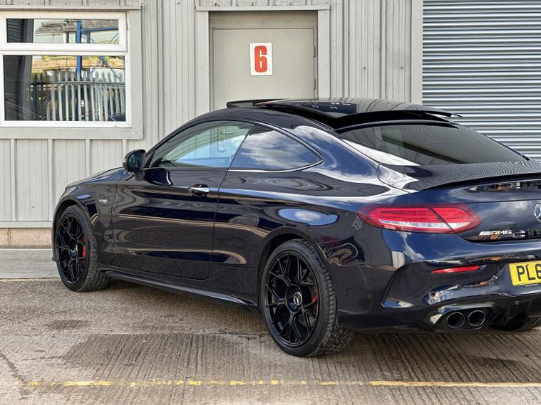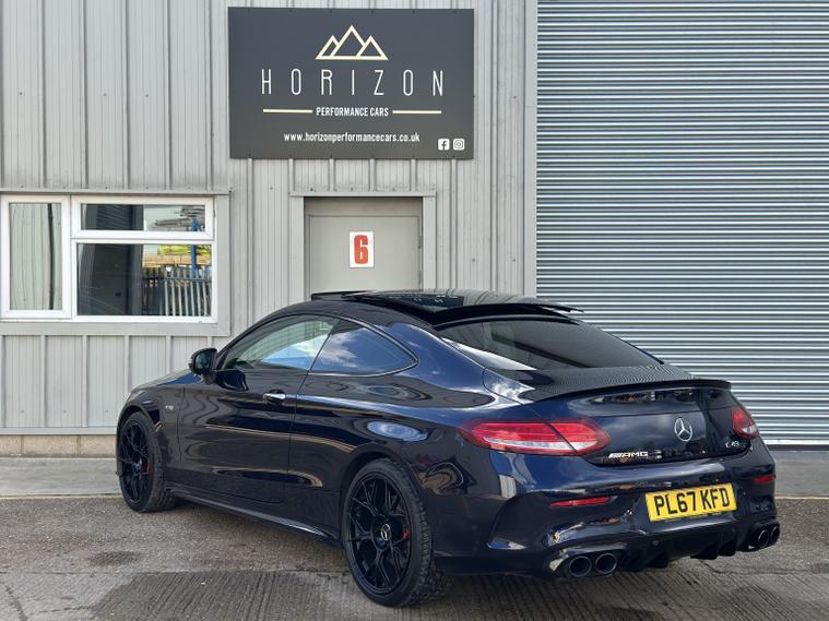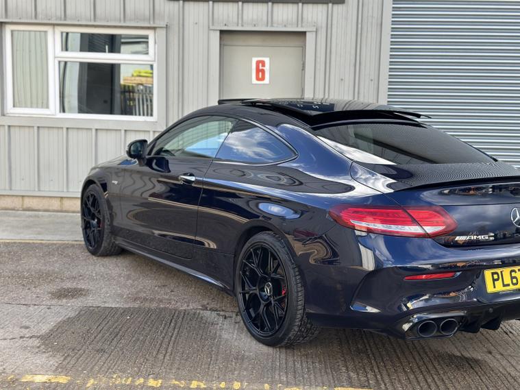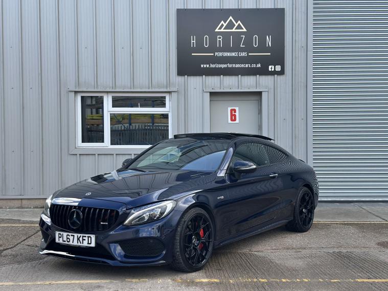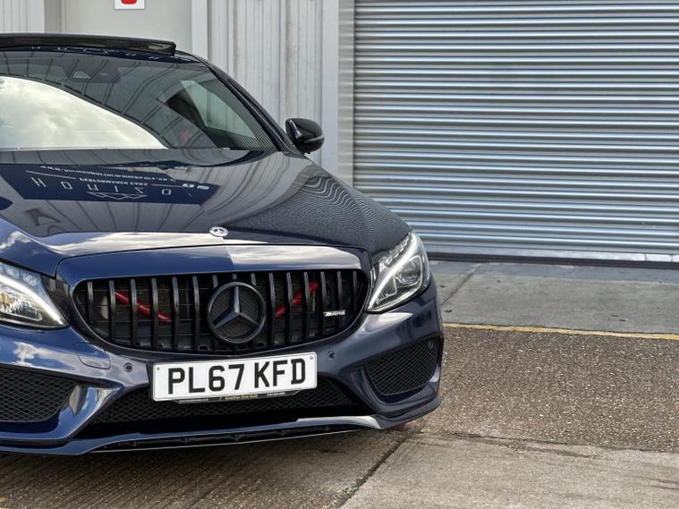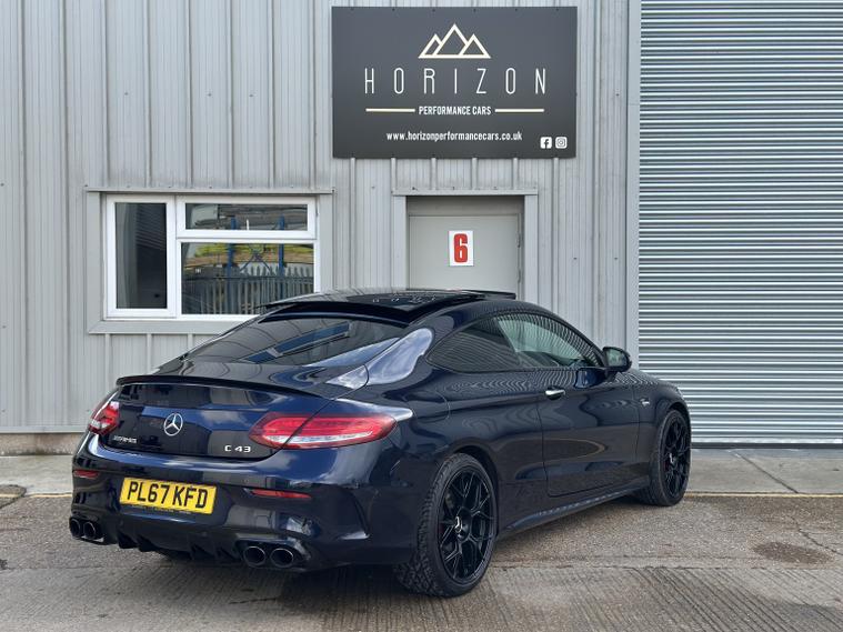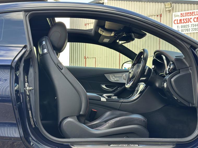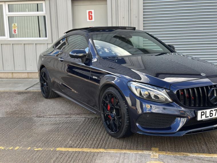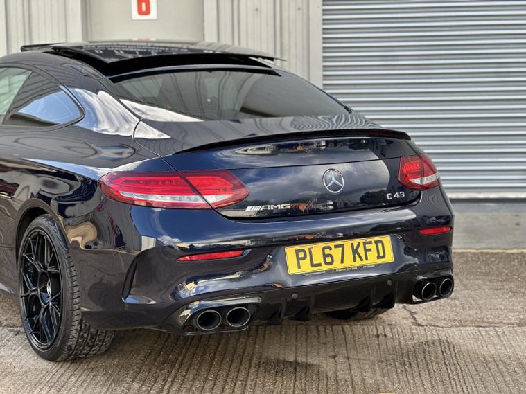 Mercedes C43 AMG Premium Plus 4Matic, ULEZ compliant, 2017 (67), just 70, 000 miles, 8 service records (just serviced), HPI clear, 2 keys, long MOT and 3 months warranty. A truly stunning example of a C43 coupe, finished in dark blue with satin black alloys, in the must have premium plus spec it really looks fantastic. We bought the car directly from its previous owner, who was selling it to fund their house purchase. The condition of the car can only be described as superb, it is lovely both inside and out. All four wheels are unmarked, all four tyres have lots of life remaining (fronts are nearly new). Mechanically the car is faultless, and drives brilliantly. Features wise this C43 has a mega specification; AMG sports exhaust (sounds sublime), LED light system, privacy glass, Burmester Sound System, panoramic roof, keyless entry and start, heated/electric/memory seats, reversing 360 camera, power boot, powerfold mirrors, DAB radio, navigation, cruise control, drive select mode, climate control, parking sensors, paddle shifts, radio, Bluetooth, auto lights, electric windows, electric mirrors, and much more. If you are in the market for one of these you will not be disappointed with this one, it must be one of the best on the market. It almost certainly wont be around for long, so please call us to make an appointment to view. Viewings are by appointment only, part exchange and finance are both possible, we can also deal with you remotely by proving part exchange prices, remote finance and paperwork signing. 22, 995