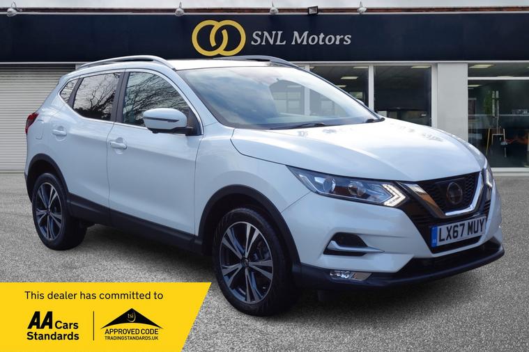 This 2017 Nissan Qashqai DIG-T N Connecta boasts exceptionally low mileage for its age, having covered just 37, 000 miles. It is presented in the N Connecta trim, offering a refined driving experience. Its impressive suite of parking aids includes front and rear parking sensors, a rear parking camera, and an Intelligent Around View Monitor which provides a 360 degree camera view, making manoeuvring in tight spaces significantly easier. It also has a navigation system, Bluetooth, Cruise control and comes with a full Nissan service history. The highlights of this Nissan Qashqai demonstrate its superior value. With an impressive fuel economy of 50 miles per gallon, it offers an economical choice for your motoring needs. Furthermore, its low insurance group and low CO2 emissions mean that running costs are kept to a minimum, setting it apart from many other vehicles in its class. All vehicles are thoroughly checked before sale and sold with a fresh 12 months MOT and service. 3 months comprehensive warranty and 12 months AA breakdown cover is included as standard. Extended warranty and Finance packages available. Part exchange welcome. Please contact SNL Motors for further information and to arrange a viewing.