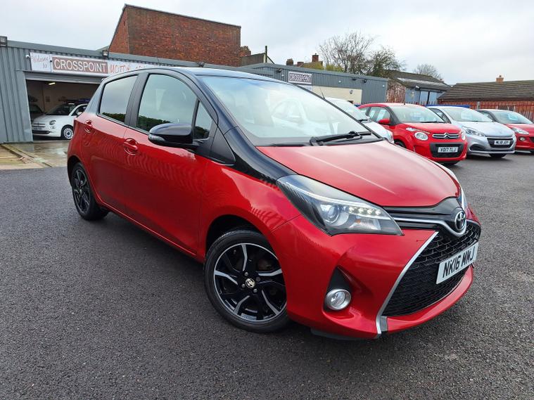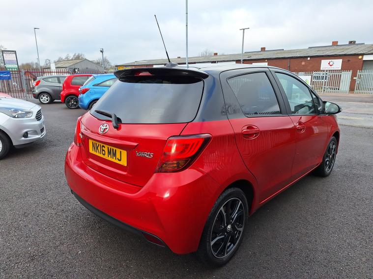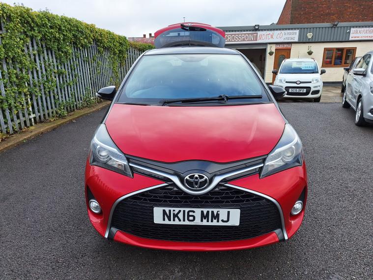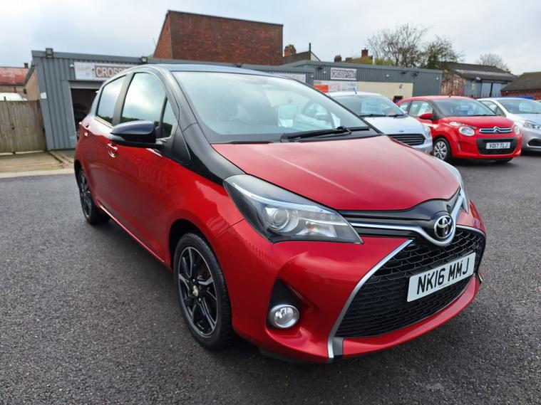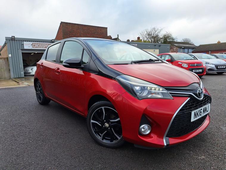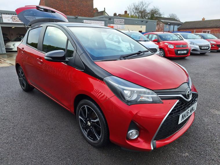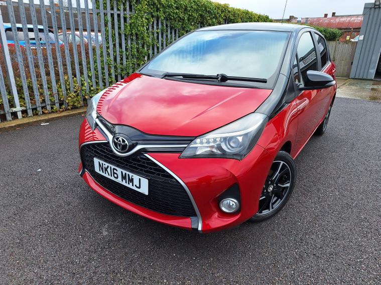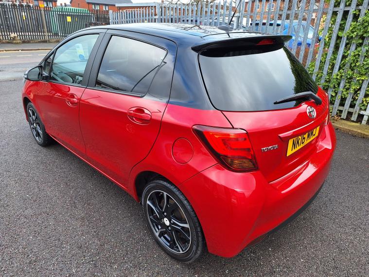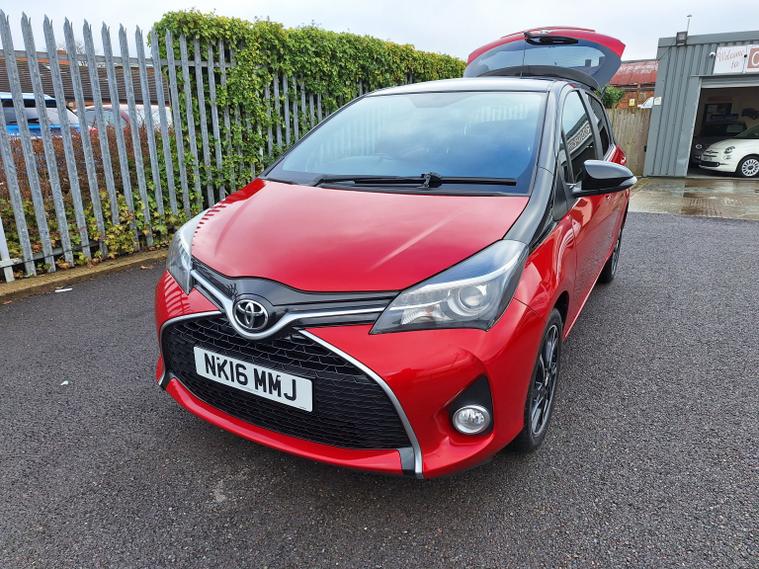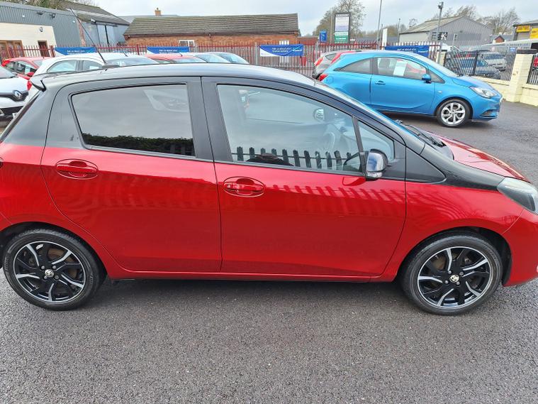 We are delighted to offer for sale this striking Toyota Yaris .13 VVT-i Design 5 door hatchback. Finished in Metallic Vermillion Red and Eclipse Black Roof, this car looks and drives superb. This car comes with great specification including Reversing camera, DAB, 6 speed, air conditioning, cruise control and DAB. This car has a full service history and is offered with a new 12 month MOT upon sale and has two keys. If your looking for a well maintained family car this Yaris could well suit your needs and with the Toyota reputation for build quality and reliability, this car can be brought with confidence