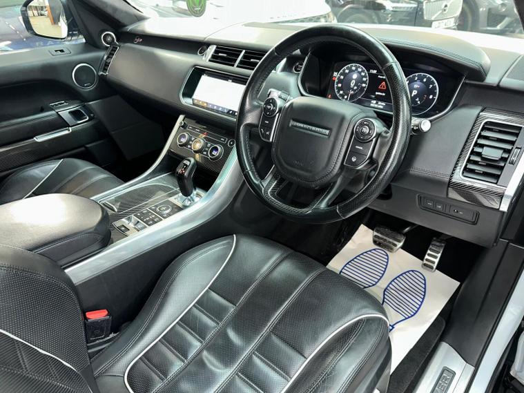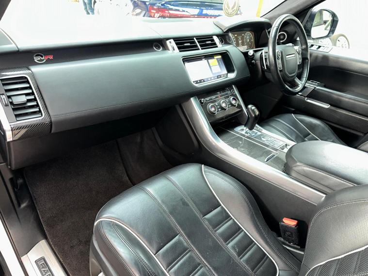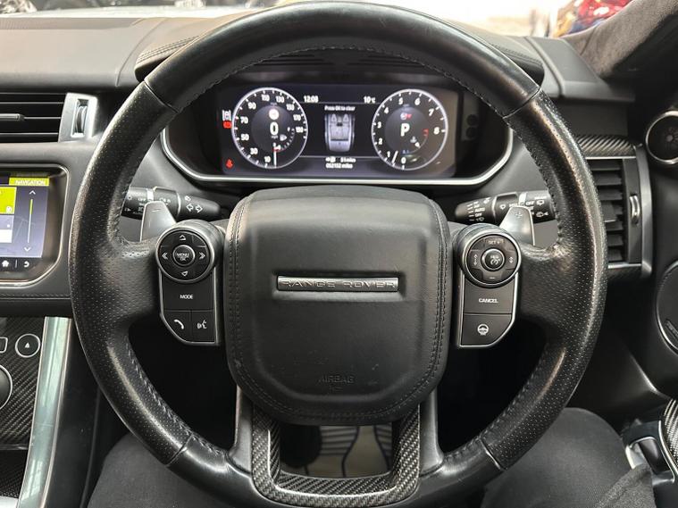 This is a Land Rover Range Rover Sport, a four-wheel drive car, first registered in 2017. As the V8 SVR variant with the SVR trim and a 5.0-litre petrol engine, it meets Euro 6 emission standards. It comes with a full dealership service history and has a low mileage of just 52, 152 miles, all round Discs and Pads are newly replaced. Among its features are loadspace rails and a lockable cross beam for secure storage, wade sensing, blind spot monitoring, closing vehicle sensing, and reverse traffic detection for enhanced awareness. For ease of use, it also has advanced tow assist, traffic sign recognition, lane departure warning, park assist, and adaptive Xenon headlamps with LED signature lighting. For peace of mind, it comes with a 6-month warranty and a 12-month MOT provided on purchase. With 784 litres of boot space, this Range Rover Sport offers considerable practicality, making it more spacious than similar vehicles. Furthermore, its impressive acceleration, reaching 0-60mph in just 4.5 seconds, demonstrates its superior performance compared to other cars in its class.