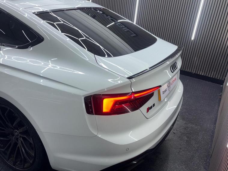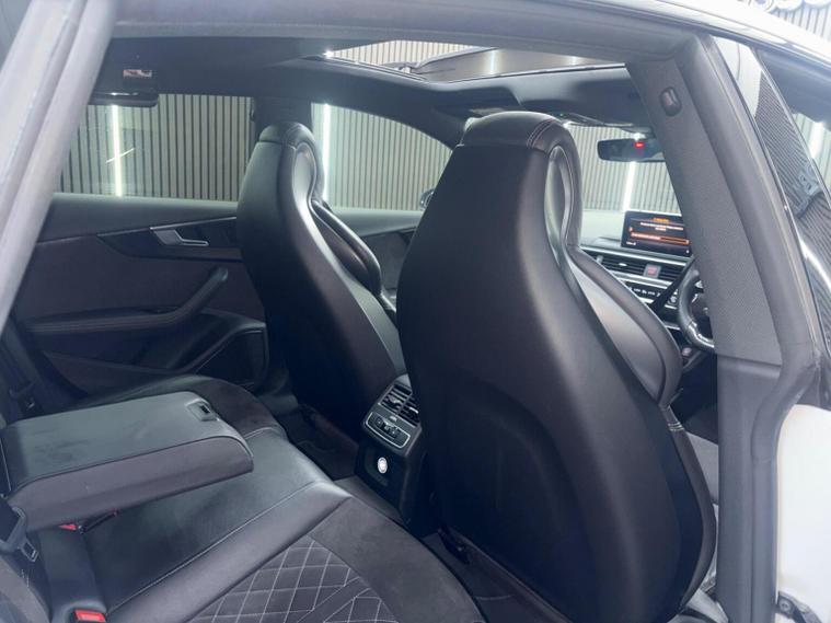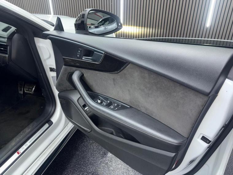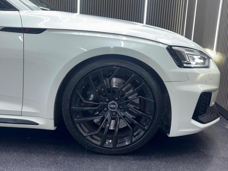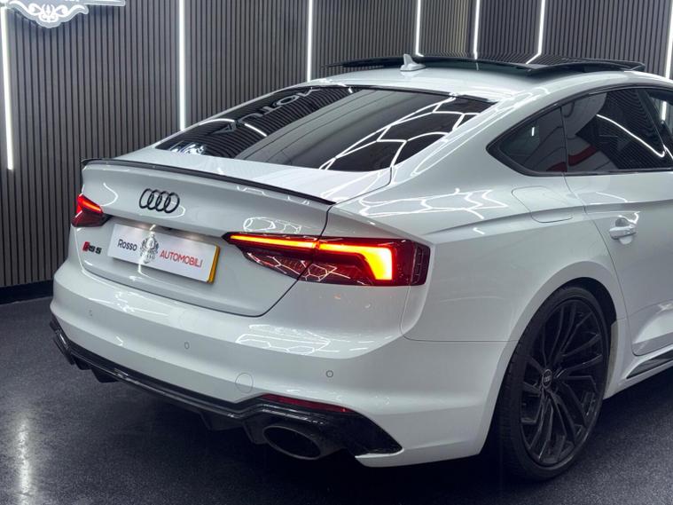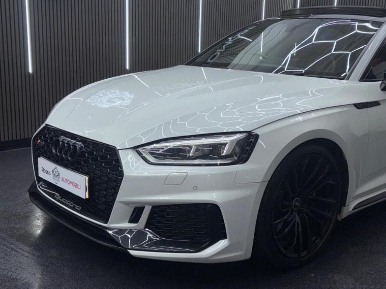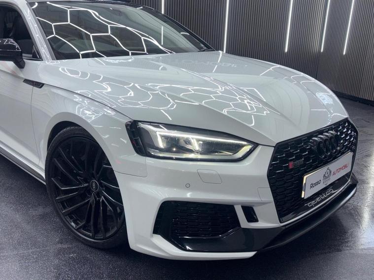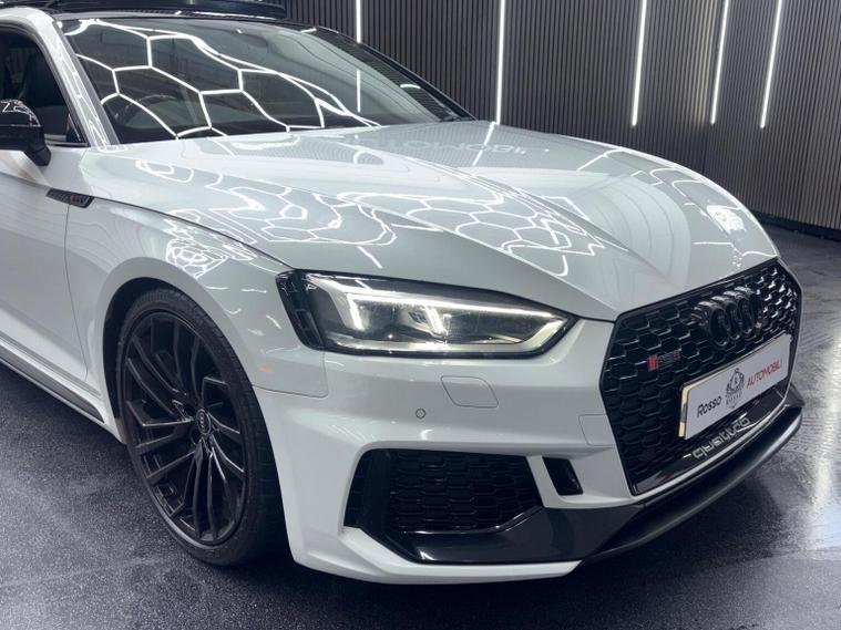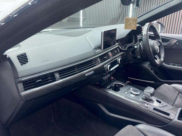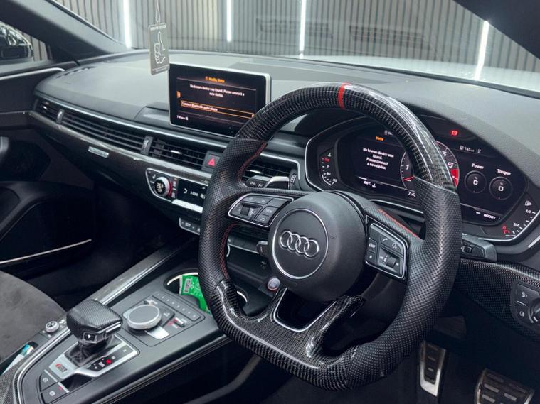 This 2019 Audi RS5 TFSI V6 Sport Edition boasts exceptionally low mileage for its year, having covered just 32, 800 miles. This performance coup features a powerful 2.9 litre petrol engine paired with a four wheel drive drivetrain, ensuring dynamic handling and impressive acceleration from 0-62mph in a mere 3.9 seconds. It meets Euro 6 emissions standards and comes equipped with the desirable Comfort and Sound Package, which includes keyless entry, a luxury branded sound system, and rear parking assistance with a camera. Further enhancing the driving experience are the extended multi coloured LED interior lighting package, automatic headlights with a light and rain sensor, and Audi Side Assist for blind spot monitoring. The RS5 Sport Edition also benefits from striking LED headlights with distinctive RS air intakes. The generous boot space offers practicality for everyday use, a notable advantage for a vehicle of this calibre. These features collectively demonstrate how this Audi RS5 offers a superior driving experience compared to other similar vehicles, combining exhilarating performance with advanced technology and everyday usability.