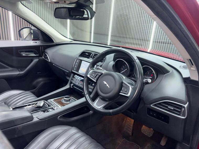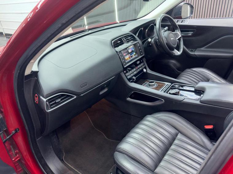 This 2017 Jaguar F-PACE D180 Portfolio boasts a single owner from new, offering a well cared for example of this popular model. Powered by a 2.0 litre Euro 6 diesel engine, this Four Wheel Drive F-PACE delivers a strong performance with an acceleration of 0-60mph in just 8.2 seconds. The Portfolio trim level ensures a premium experience, featuring Xenon headlights, automatic headlights, and front parking aid for enhanced visibility and convenience. Inside, you can enjoy the sophisticated Meridian sound system with 380W of power and seamless Bluetooth telephone connectivity. With a notable fuel economy of 53 mpg, this Jaguar F-PACE is more efficient than many similar vehicles, making it an economical choice for your journeys. Its substantial boot space provides ample room for luggage or shopping, further enhancing its practicality. The impressive towing weight of 2400 kg means this F-PACE is also capable of handling significant loads. These highlights demonstrate the superior blend of performance, efficiency, and utility offered by this Jaguar F-PACE.