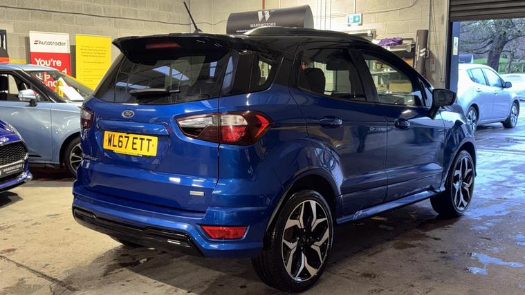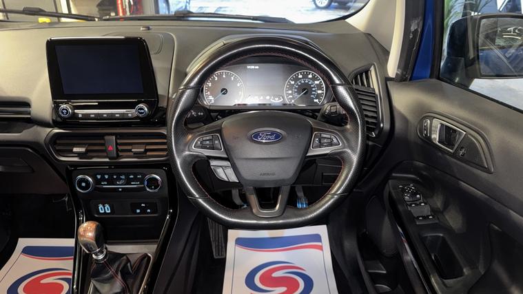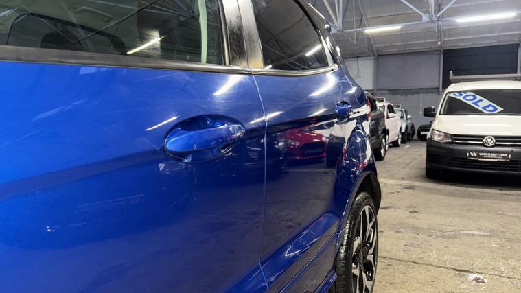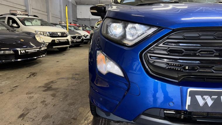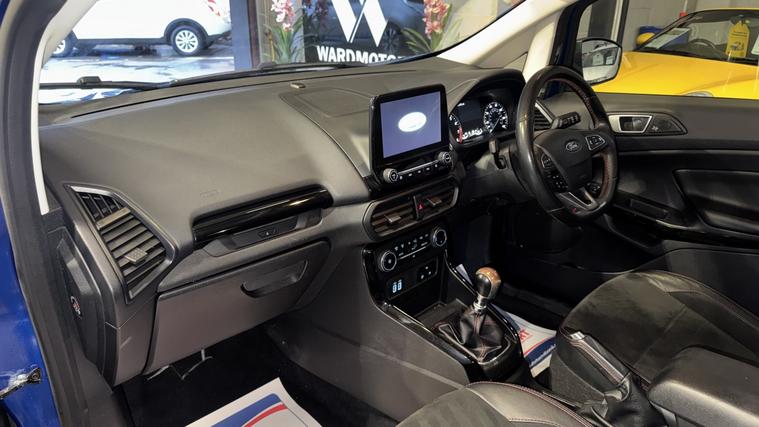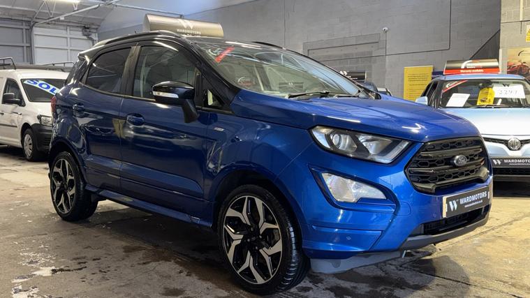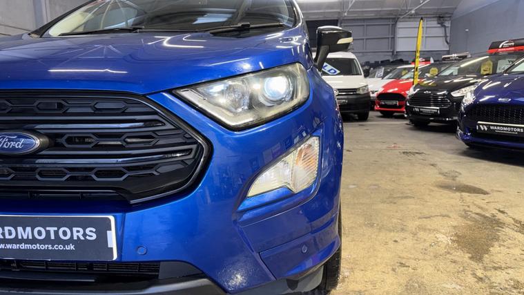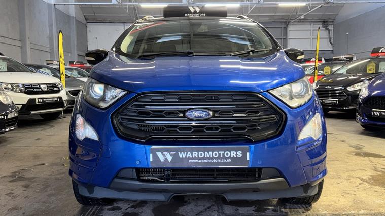 Ward Motors Leeds Used Cars Leeds are pleased to offer this Ford Ecosport 1.0 T EcoBoost ST-Line Blue 5dr, the car is in excellent condition throughout. Perfect colour combination and a great specification too including Satellite Navigation, Part Leather Seats, Front & Rear Parking Sensors, Reverse Camera, Cruise Control, DAB radio, Bluetooth, Apple Carplay, 6 Speed Gearbox, Privacy Glass, Voice Command, Climate Control, Electric Windows, CD Player, AUX Point, USB Point, ISOFIX, Alloy Wheels and much much more. The car will be supplied with an MOT until February 2027 and an up to date service history having just being serviced in our trusted workshop. FINANCE NOW AVAILABLE!! FREE 3 months national cover warranty with all purchases, 500 per claim with the option to up this limit to 1, 000 per claim for only 59! Peace of mind package offer 12 months national cover warranty including breakdown cover now on offer for only 399*. WE OFFER DELIVERY Nationwide Delivery is available 7 days a week, ask for a quotation now! Finance now available same day drive away, we are now closely teamed up with Close Motor Finance, CarFinance247 and CarLoan2Day for you finance needs. We also work with Zuto, Carloans365, CarloansUK and many more outside brokers. Reserve now for only 99! Pop down and see the team at Ward Motors Leeds Used Cars Leeds located in Armley LS12 opposite Armley Park Main Entrance. Browse, Try, Buy DISCLAIMER: The above listed specification is true and correct. Any other specification listed elsewhere can sometimes be incorrect. Please check with the team to clarify this if needed prior to any purchase. Ward Motors Leeds do not warrant or re gas air conditioning hence why we do not advertise any of our cars/vans with AC/air conditioning. *Warranty 499 on 4X4 and engines above 2.2 litre.