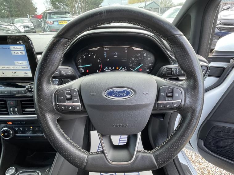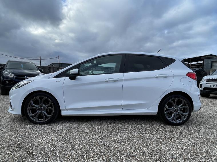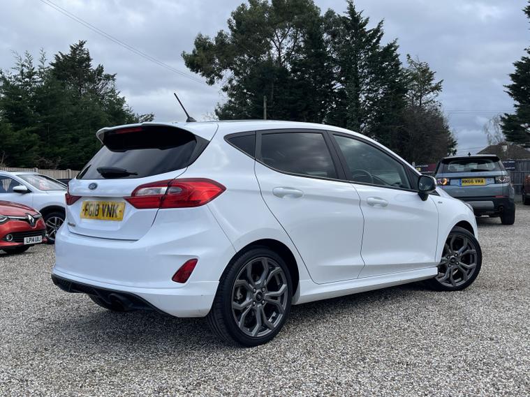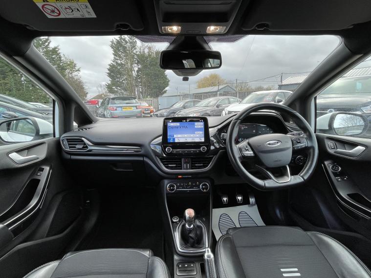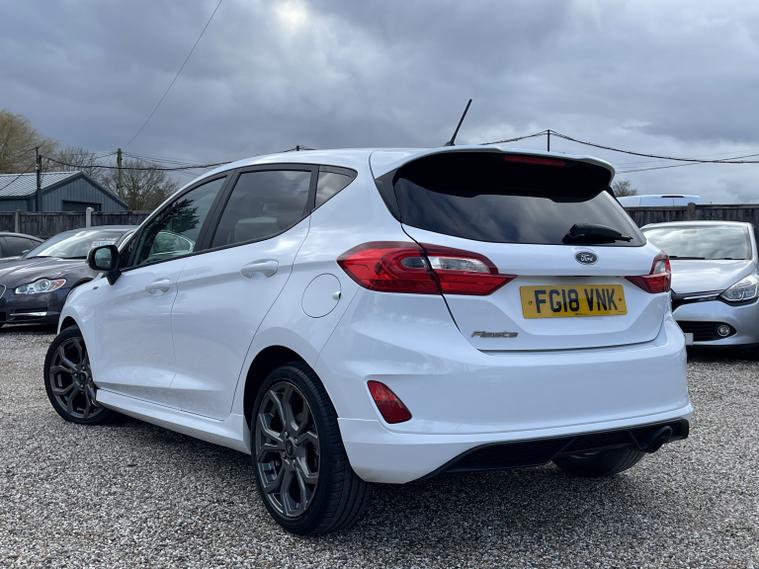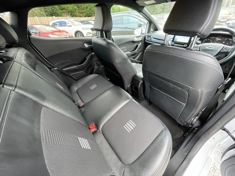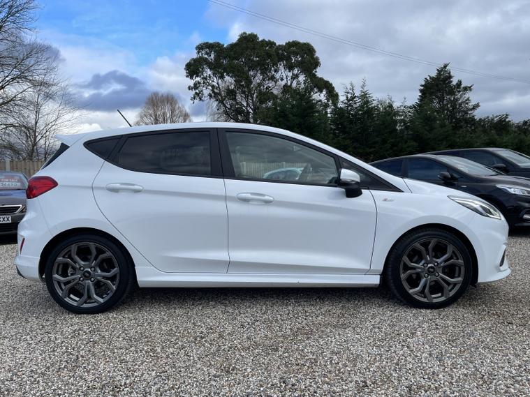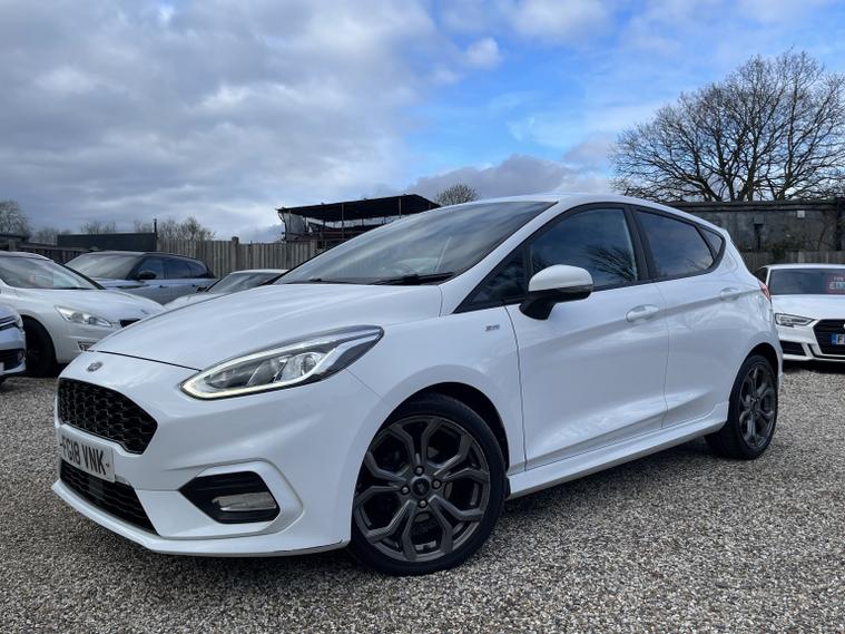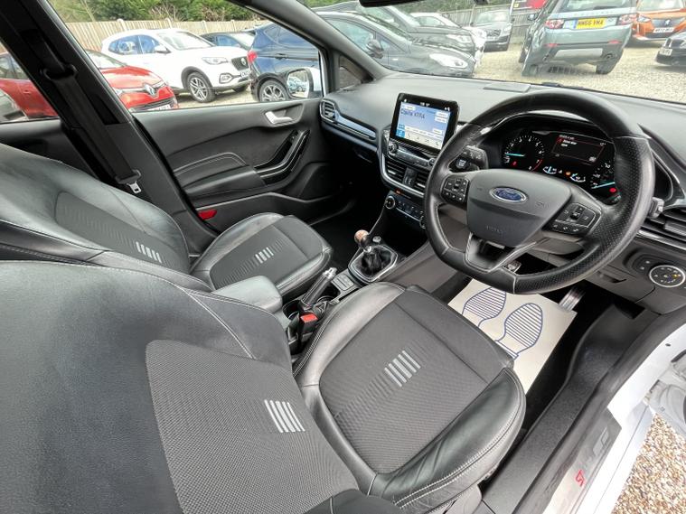 Essex Car Fleet is delighted to present this sporty 2018 (18) Ford Fiesta 1.0T EcoBoost ST-Line X finished in Frozen white , a sharp-looking and well-equipped hatchback that perfectly blends performance-inspired styling with everyday usability. Finished in classic ST-Line trim and sitting on 17in ST-Line 5-spoke Rock Metallic alloy wheels, this Fiesta benefits from the full ST-Line bodystyling package including the unique upper grille with ST-Line wing badges, side skirt mouldings, distinctive front and rear ST-Line bumpers and a large body-coloured rear spoiler, all complemented by rear privacy glass, LED rear night signature lights and ST-Line front fog lamps with cornering lights. Inside, the ST-Line X specification brings a premium and sporty cabin feel with sports style front seats featuring height and lumbar adjustment, a flat-bottomed ST-Line leather-trimmed steering wheel, ST-Line leather gearshift knob with aluminium inset, leather-trimmed handbrake, sports pedals, ST floor mats front and rear and ambient LED courtesy lighting to the cup holders, while the 4.2in TFT instrument cluster screen and trip computer keep key driving information clearly in view. Comfort and convenience are enhanced by electronic automatic temperature control air conditioning, cruise control, Quickclear heated windscreen, power folding door mirrors with puddle lights, automatic rain sensing wipers, auto-dimming rear view mirror, electric front windows with one-touch driver function, Ford Easy Fuel system, illuminated glovebox, centre console with armrest and illuminated cupholders and an overhead sunglasses holder. Technology is well catered for with the Ford Navigation System featuring SYNC 3, Apple CarPlay and Android Auto, traffic sign recognition and driver alert, while safety is comprehensive thanks to ABS with electronic brakeforce distribution, electronic stability control with traction control and emergency brake assist, ESP with hill start assist, Intelligent Protection System, NCAP pack, tyre pressure monitoring system, Thatcham alarm, remote central locking with engine immobiliser and a full complement of airbags including front, side and curtain airbags. With sports tuned suspension and Fords punchy yet efficient 1.0 EcoBoost engine, this ST-Line X Fiesta offers a rewarding drive alongside strong specification, making it an excellent choice for those seeking a stylish, fun and well-rounded hatchback. With our location based in Battlesbridge in Essex, Enjoy haggle-free buying experience where you can drive away the same day of prior arranged appointment. Please see our website for details. Call now or enquire online for a no-obligation test drive, finance quote or part-exchange valuation, 5 Star Dealer, Finance Available, Delivery Available, Part exchange Available, all cars are supplied with a 3 months warranty, 12 months MOT. Please call all a member of the team on 01268372176 and we will be delighted to help you move your enquiry forward 5 Star Dealer, Finance Available, Delivery Available. Our preparation team have inspected to the highest level possible for the age and mileage of vehicle, You can rest assured your car has been cared for to our highest Standard. With our location based in Battlesbridge in Essex you can enjoy a haggle-free buying experience where you can drive away the same day if prior arranged appointment. 150 admin fee applies, please see our website for details.