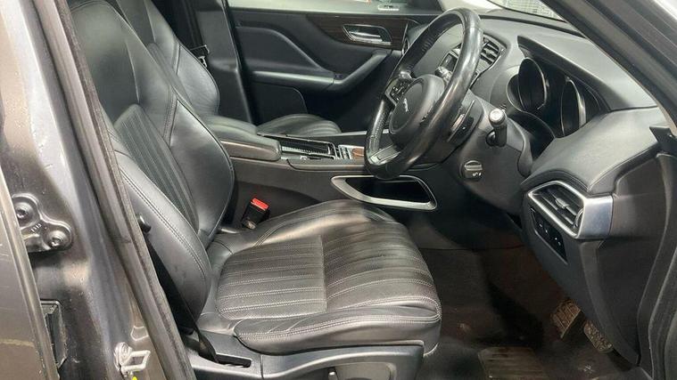 This 2018 Jaguar F-PACE D180 Portfolio is presented with a partial service history, with its last service completed at 103, 000 miles. This four wheel drive model is powered by a 2.0 litre Euro 6 diesel engine, offering a smooth and capable driving experience. The Portfolio trim level ensures a premium feel, complemented by notable features such as 20 inch alloy wheels in a 10 split spoke style 1019, and elegant Satin Grey Figured Ebony Veneer. Experience enhanced comfort and convenience with the Cabin Pre-Conditioning system, allowing you to set the temperature remotely. The Meridian Sound System, delivering 380W of audio clarity, transforms every journey into a concert hall. Enjoy the expansive feel provided by the Fixed Panoramic Roof, bathing the interior in natural light. With a substantial boot space, this F-PACE is as practical as it is refined, and its 0-60mph acceleration in just 8.4 seconds demonstrates its responsive performance, setting it apart from other vehicles in its class. The vehicle also boasts a towing weight of 2400 kg, adding to its versatility.