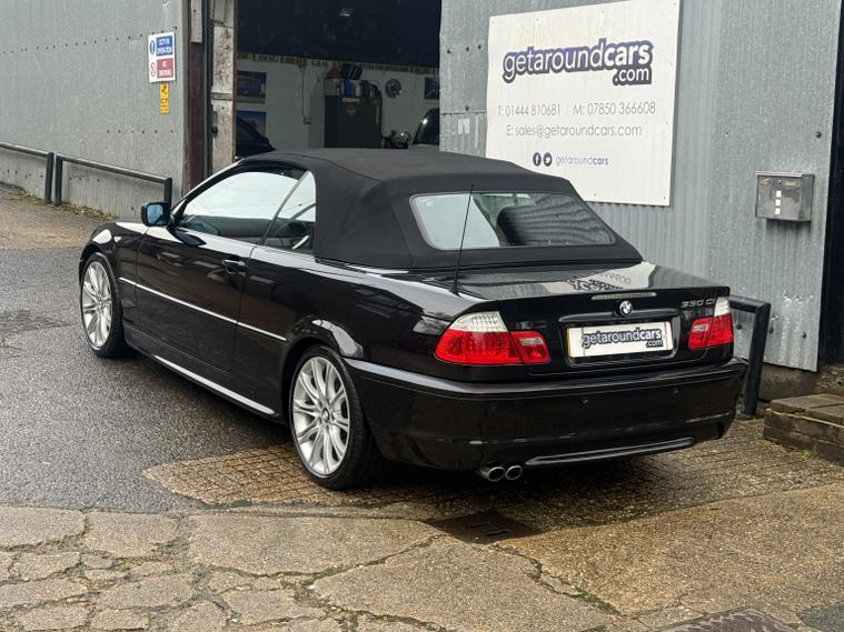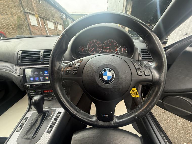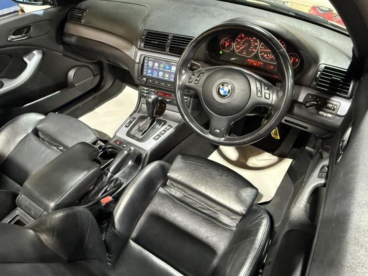 getaround in what can only be described as the ultimate convertible. This legendary E46 3.0 petrol automatic 330Ci Sport from BMW looks stunning finished in black sapphire metallic with contrasting full black leather interior. It has the perfect spec that includes electric memory front seats, cruise control, rear parking sensors, immaculate MV2 alloy wheels with matching bridgestone tyres, Upgraded DAB audio system that has both Apple car play and Android auto, hands-free phone prep, power hood and air-conditioning. The car has a comprehensive service history that is made up of some 10-dealer stamps (5-BMW main dealer, 3-BMW specialist and 2-local garage). It comes with the owners book pack, fully stamped service booklet, two keys, locking wheel nut, complete tool kit, space-saver spare wheel with jack and brace, clear HPi certificate. Phone, text or email for an appointment to view this ULEZ compliant future classic soon.
