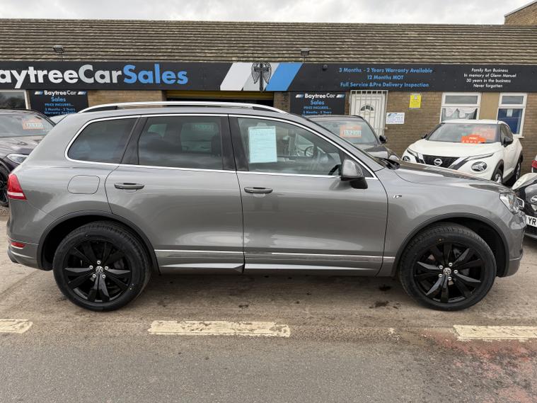 Volkswagen Touareg 3.0 TDI V6 BlueMotion Tech R-Line finished in Grey (Auto), 101, 000 miles, 1 previous owner. Welcome to the sale of this rare opportunity to own a superb example of the Volkswagen Touareg R-Line. This vehicle has had the same owner since 2018 and comes with complete end-to-end Volkswagen Main Dealer Service History, having been maintained exclusively by just two Volkswagen main agents throughout its life. 11 Volkswagen Main Dealer services, 1 service carried out by our workshop team, 101, 000 miles from new, This level of documented main dealer history is exceptionally rare and makes this example stand head and shoulders above the rest. The car has recently benefitted from:, 4 brand new tyres, Recent discs and pads replacement, Will be fully serviced again prior to sale, Supplied with a fresh 12 months MOT, It drives absolutely fantastic with no unwanted noises or issues. Tight, smooth and exactly how a properly maintained Touareg should feel. With caravan season approaching caravan season, these 3.0 V6 TDI engines are excellent news strong, refined and more than capable. Being the R-Line model, this Touareg comes with an exceptionally strong specification. Exterior specification includes:, Front & rear parking sensors, Electric tailgate, R-Line styling package, Diamond cut alloy wheels (all with new tyres), LED headlights with washer jets, Electric folding mirrors, 2 keys, Interior specification includes:, Fully opening panoramic glass sunroof, 12-way adjustable black leather seats, Heated front seats, Automatic lights, Cruise control, Satellite navigation, DAB radio, Bluetooth phone preparation, Ice cold air conditioning, A very hard car to find with this ownership profile, specification and complete Volkswagen history. Only 12, 695, Because we are a RAC-approved dealer, all our vehicles come with free RAC breakdown cover, a free RAC history check, 12 months MOT, and a full service. Nationwide delivery is available. Call 01406223583 for more information (even out of hours). Please also feel free to contact us outside of hours to discuss this vehicle further.