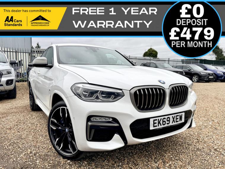 2 KEYS | FULL SERVICE HISTORY - This 2019 BMW X4 M40i offers exceptional value with its MOT valid until June 2026, providing peace of mind for the coming years. This impressive four wheel drive model is powered by a potent 3.0 litre petrol engine, meeting Euro 6 emission standards. Inside, youll find a wealth of technology, including a Head Up Display, Bluetooth connectivity, and wireless phone charging, all part of the Technology Package. The M Sport Plus Package further enhances the driving experience, while the front seats are heated for comfort. Practicality is also a strong point, with generous boot space for all your needs. The performance of this X4 M40i is truly remarkable, achieving 0-62mph in just 4.9 seconds, demonstrating its superior acceleration compared to similar vehicles. Parking is made effortless thanks to the Parking Assistant, which includes front and rear sensors along with a rear camera. Furthermore, this model benefits from a low insurance group, making it a more economical choice to own and run.