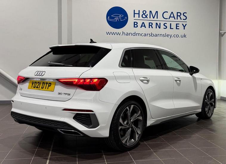 ** SERVICE AND MOT COMPLETED BEFORE HANDOVER**, German Autocare and H and M Cars Barnsley Approved Vehicle, This 2021 Audi A3 TFSI S line offers exceptional value with its remarkably low mileage of just 32, 500 miles for its age, complemented by a full service history. This Euro 6 compliant model is equipped with a 1.0 litre petrol engine and features the desirable S line trim. You can drive away with confidence knowing it comes with a 3 month warranty and a 12 month MOT provided on purchase. Notable features include Dual Zone Electronic Climate Control for personalised comfort, LED headlights and rear lights with dynamic rear indicators for enhanced visibility, and the Audi Smartphone Interface for seamless connectivity, including Apple CarPlay. Parking is made easier with rear parking sensors, and the Bluetooth interface allows for convenient hands free calls and audio streaming. Experience the practicality of this Audi A3 with its large boot space, perfect for all your needs. This model also boasts an impressive fuel economy of 52 miles per gallon, making it more economical than many similar vehicles. Its acceleration from 0 to 62 miles per hour in just 10.6 seconds demonstrates a responsive driving experience that stands out from the crowd.