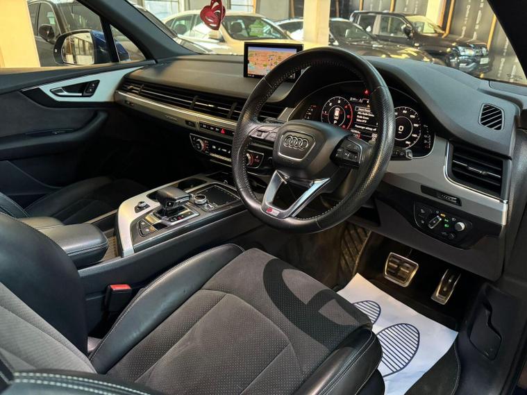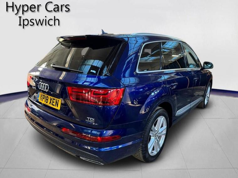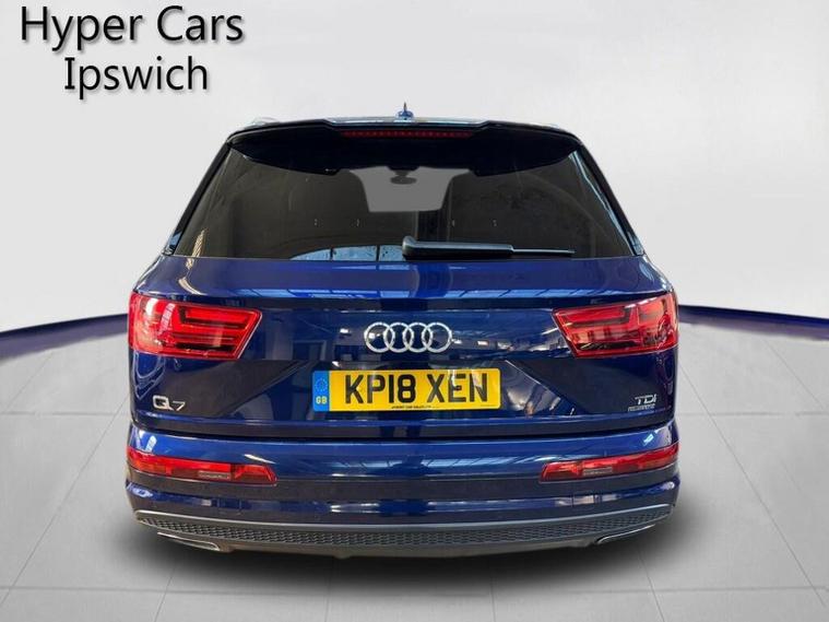 Boasting a full service history and a clear vehicle history check, this 2018 Audi Q7 TDI V6 S line offers exceptional provenance. This impressive seven seat SUV is equipped with a powerful 3.0 litre diesel engine and Four Wheel Drive, ensuring capability in all conditions. Its Euro 6 emission class meets modern environmental standards, and it has a substantial towing weight of 2800 kg. The vehicle comes with a 6 month warranty for your peace of mind, and its MOT is valid until March 2026. Notable features include Advanced Key with keyless entry, heat and sound insulating glass with privacy glass, and stylish 20 inch alloy wheels in a 10 spoke star design. This Audi Q7 stands out with its impressive performance, achieving 0 to 62 miles per hour in just 6.5 seconds, a speed that indicates it is quicker than many similar vehicles. The S line trim enhances its appeal with features like ambient lighting and Audi Exclusive floor mats, adding a touch of luxury to the interior. Furthermore, its placement in a low insurance group suggests that running costs are more economical compared to other vehicles in its class. The last service was completed on 22 August 2025, ensuring it is well maintained and ready for its next owner.