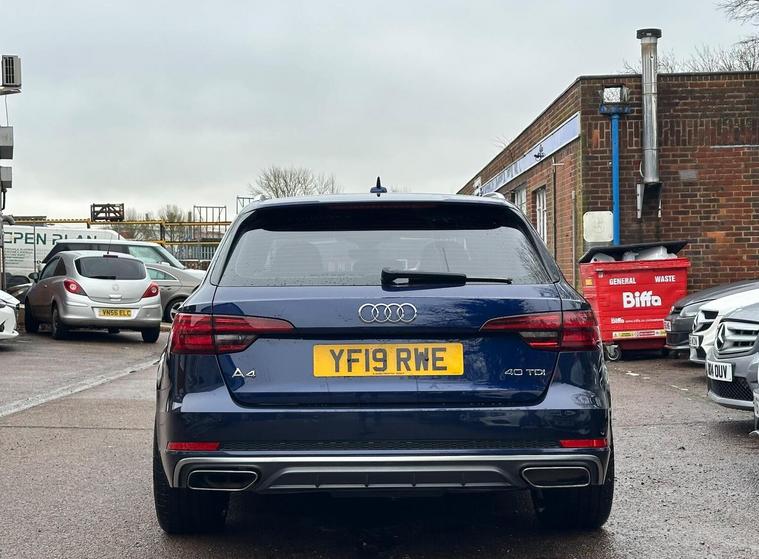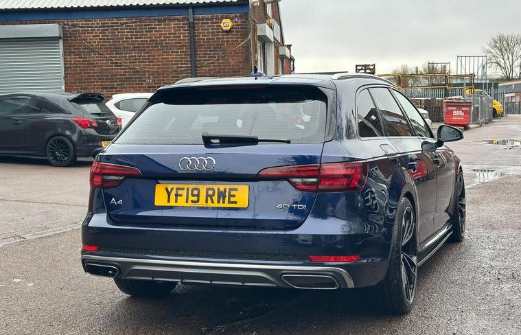 SAME DAY FINANCE AVAILABLE WITH 0 DEPOSIT, CALL OUR FINANCE TEAM FOR A QUOTATION TODAY, GREAT FINANCE PACKAGES, LOW RATE FINANCE, PARTIAL SERVICE HISTORY, HEATED SEATS, NAVIGATION SYSTEM, NAVIGATION SYSTEM ON SPEED METER AS WELL, MULTO ZONCE CLIMATE CONTROL, CRUISE CONTROL, BLUETOOTH CONNECTIVITY, ALLOY WHEELS, DELIVERY AVAILABLE (opt), ALL MAJOR CREDIT & DEBIT CARDS PAYMENT ACCEPTED. OPEN 7 DAYS A WEEK, VISIT OUR WEBSITE FOR MORE CARS: dealer's website This 2019 Audi A4 Avant TDI S line offers a superb blend of performance and sophisticated technology. As a Euro 6 compliant model, it features a powerful 2.0 litre diesel engine, ensuring an efficient and responsive drive. The S line trim enhances its sporty appeal, while the inclusion of LED headlights with dynamic rear indicators provides excellent visibility and a modern aesthetic. Inside, youll find comfort and convenience with heated front seats and deluxe 3 zone electronic climate control, ensuring a pleasant environment for all occupants. The Bluetooth interface allows for seamless connectivity on the go. The acceleration of this A4 Avant is a notable highlight, achieving 0-62mph in just 7.9 seconds. This brisk performance, combined with the advanced LED lighting system and the convenience of automatic headlights activated by the light and rain sensor, demonstrates how this vehicle excels beyond its peers. The thoughtful integration of features like heated seats and multi zone climate control further elevates the driving experience, making this Audi A4 Avant a compelling choice for those seeking a premium and capable estate car.
