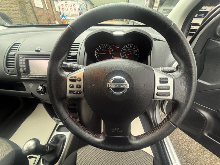 getaround in this nice clean low milage Note from Nissan. This 5-speed manual 1.4 N-Tec model looks good finished in metallic silver with contrasting dark cloth interior. It has a good spec that includes electric windows, full screen colour Sat-Nav, remote locking, alloy wheels, cruise control and air-conditioning. The car has a comprehensive service history that is made up of some 8-dealer stamps and a new MOT, incidentally the last 11-MOT.s have been advisory-free. It comes with the owners book pack, fully stamped service booklet, two keys, locking wheel nut and clear HPi certificate. Phone, text or email for an appointment to view this sought after ulez compliant petrol hatchback soon.