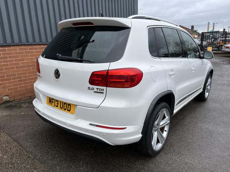 With an exceptionally low mileage for its age, this 2013 Volkswagen Tiguan TDI R-Line presents a compelling proposition. This Four Wheel Drive model, powered by a 2.0 litre Diesel engine, has been meticulously maintained with a full service history, including its last service at 60, 235 miles on 19th February 2026. It boasts a clear vehicle history check and has had only two owners. Notable features include front and rear parking sensors for effortless manoeuvring, Bi-Xenon headlights for superior visibility, and 2 Zone Electronic Climate Control to ensure comfort for all occupants. The inclusion of Bluetooth telephone preparation allows for seamless connectivity on the go. This Tiguan R-Line offers a towing weight of 2200 kg, making it a versatile choice for various needs. The 12 months MOT provided on purchase and a 3 month warranty offer added peace of mind. The very low mileage of just 60, 200 miles for a vehicle of this age indicates it has been used sparingly, suggesting less wear and tear compared to other similar models on the market. This careful ownership and maintenance history combine to make this Tiguan a stand out option. 12V Socket - Centre Console, 12V Socket - Luggage Compartment, 6CD Autochanger - Dash Mounted, Bluetooth Telephone Preparation, MDI - Multi Device Interface with USB - iPod Connection Cables, RCD 510 Touch Screen DAB Radio System, SD Card Reader, Speakers x8, Driver Alert System, Flat Tyre Indicator, Multifunction Computer, Park Assist including Parking Sensors Front and Rear, Parking Sensors - Front, Parking Sensors - Rear, 18in Alloy Wheels - Mallory, Body-Coloured Door Mirrors with Integrated Indicators, Bumpers - R-Line Design, Chrome Trimmed Front Air Intake Grille Surround, Door Mirrors - Electrically Adjustable and Heated, Dynamic Curve Lighting, Electric Windows - Front and Rear, Heated Rear Window, Radiator Grille - Black with Chrome Louvres, Rear Roof Spoiler, Roof Rails - Chrome Plated, Side Window Surrounds - Chrome, Side and Rear Protection Pack - Black with Chrome-Plated Insert, Spare Wheel - Space Saver Steel, Tinted Glass - Heat Insulating Rear 65 Percent Light Absorbing from B Pillar Backwards, Unique BlueMotion Technology Badging, Unique R-Line Badging, Daytime Running Lights - LED, Front Fog Lights with Cornering Lights, Headlight Washer System, Headlights - Automatic Range Adjustment, Headlights - Bi-Xenon - Gas Discharged, Headlights - Coming-Leaving Home Function, Headlights - Dusk Sensor - Automatic Driving Lights, High Level 3rd Brake Light, Lights on Warning Buzzer, 2 Zone Electronic Climate Control with Automatic Air Recirculation, Air Vent Surrounds - Steel Finish, Armrest - Front Centre with Storage Compartment, Automatic Dimming Rear View Mirror, Carpet Mats - Front and Rear, Cup Holders - Front x2 Rear x1, Cup Holders - Rear x2, Dashboard and Centre Console - Anthracite Metallic, Folding Front Seat Backrest, Folding Table on Back of Front Seats, Footwell Illumination - Front, Front Seat Back Storage Pockets, Front Sports Seats, Glovebox - Cooled and Lockable, Head Restraints - Front Whiplash Optimised, Head Restraints - Front with R-Line Logo, Height and Reach Adjustable Steering Column, Instrument Lighting - White Adjustable Panel Illumination, Interior Light Delay, Load-Through Provision, Luggage Compartment Cover - Removable, Luggage Compartment Light, Luggage Compatrment - Load Lashing Points x5, Pedals - Stainless Steel, Rain Sensor, Reading Lights - Front x2, Roof Lining - Titanium Black, Seats - Front Lumbar Support, Seats - Split Folding Rear Backrests 60-40 - Sliding and Reclining, Silver Metallic Decorative Inserts in Door Panels, Steering Wheel - 3-Spoke - Leather Trimmed, Steering Wheel - Multifunction Leather Trimmed, Storage Compartment in Drivers Door for 1.0 litre bottle, Storage Compartment in Passengers Door for 1.5 Litre Bottle, Storage Compartment in Roof Console, Storage Tray in Centre Console, Storage Tray on Dashboard, Sun Visors - Vanity Mirror
