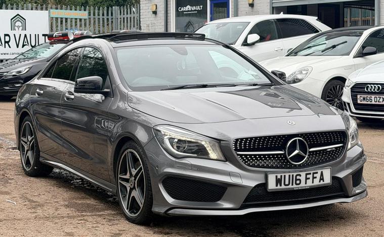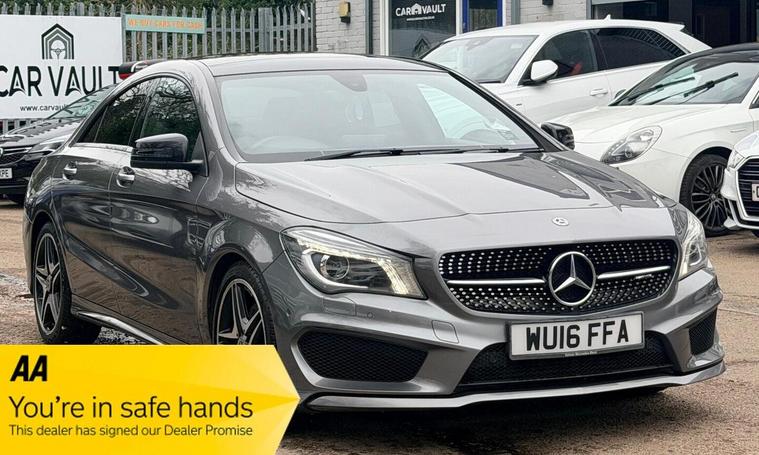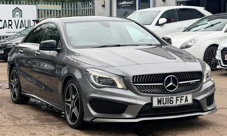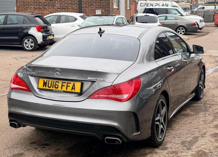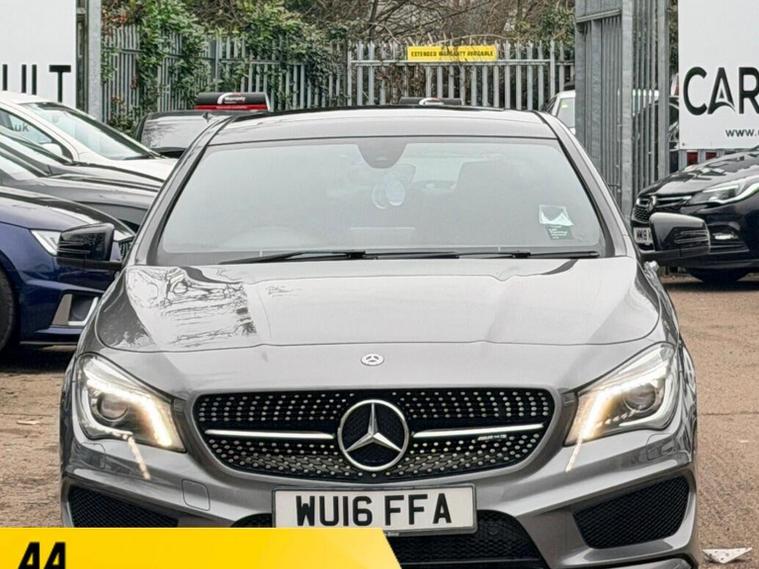 ONLY TWO FORMER OWNERS, COMPREHENSIVE SERVICE HISTORY, TRANSMISSION SERVICE @87075 MILES IN JUNE 2025, 12 MONTHS MOT AND NEW SERVICE (BY MERCEDES) OFFERED ON SALE, 12 MONTHS AA BREAKDOWN COVER, THREE MONTHS WARRANTY, TWO SETS SETS OF KEYS, SUNROOF, NAVIGATION SYSTEM, DIAMOND CUT ALLOYS, BLUETOOTH CONNECTIVITY, CLIMATE CONTROL, CRUISE CONTROL, This 2016 Mercedes Benz CLA220d AMG Sport offers an exceptional blend of style and efficiency, boasting a remarkable 67 miles per gallon. This Euro 6 compliant model features a powerful yet economical 2.1L diesel engine, ensuring a refined driving experience. The AMG Sport trim enhances its dynamic appeal, while practical features such as Bluetooth connectivity for hands-free calls and audio streaming, automatic headlamp activation, Bi-Xenon headlights, and rear parking sensors add to its convenience and safety. The appeal of this Mercedes Benz CLA220d AMG Sport is further amplified by its low CO2 emissions and its placement within a low insurance group, indicating that running costs are significantly lower compared to many other vehicles in its class. These highlights demonstrate its cost effectiveness and environmental consideration, making it a smart choice for discerning drivers.