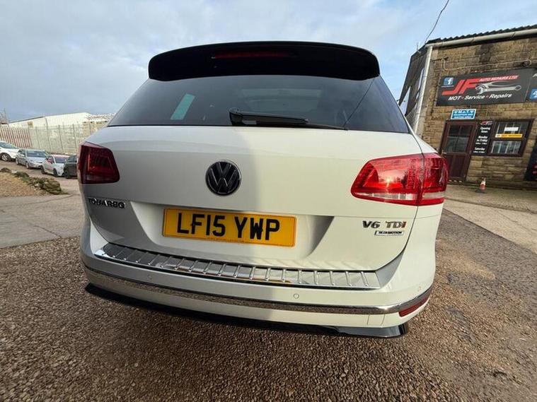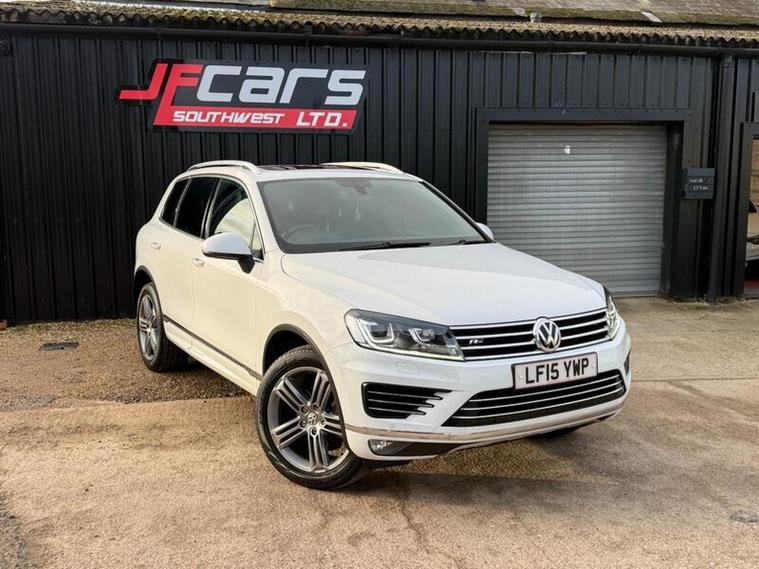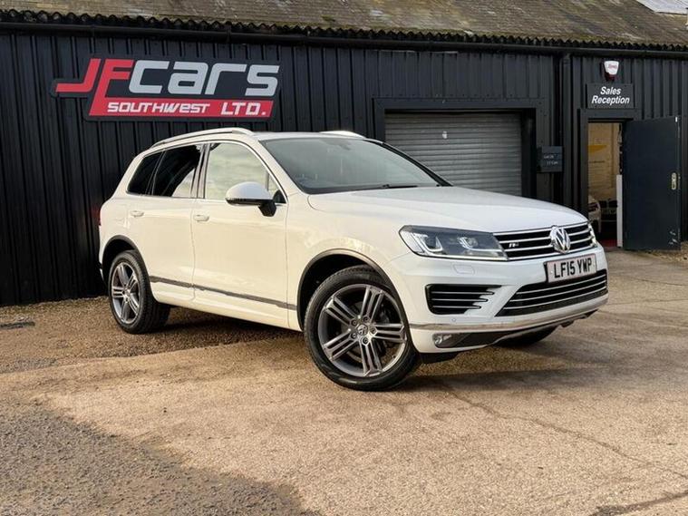 Navigate to images, Volkswagen Touareg 3.0 TDI V6 BlueMotion Tech R-Line Tiptronic 4WD Euro 6 (s/s) 5dr, LF15YWP, 2015 (15), 99, 000 miles, Diesel, Automatic, White, 3 owners, 13, 295, https://youtu.be/9AJLwQxHarc?si=PM0lfXSQhLOEnIUn, This is a lovely example of a 3.0 TDI Toureg with near full service history 7 main dealer stamps 1 other Ford main dealer stamp and the most recent carried out by our selfs here ready for the next owner along with a new mot, The car drives superb with great power delivery and smooth ride with plenty of room for the family. This model has the panoramic roof, tow bar, heated electric memory seats, sat-nav and much more. Well worth a viewing. This 2015 Volkswagen Touareg TDI V6 R-Line presents a compelling proposition with its impressive 3500 kg towing weight, making it exceptionally capable for a variety of needs. As a Euro 6 compliant model, it benefits from lower emissions. This R-Line trim vehicle is equipped with a powerful 3.0 litre diesel engine and a four wheel drive system, ensuring confident performance in diverse conditions. Notable features include heated front seats for enhanced comfort, front and rear parking sensors to aid manoeuvrability, and Bi-Xenon headlights for superior visibility. The inclusion of Bluetooth telephone preparation allows for convenient hands free connectivity on the go. The Touareg TDI V6 R-Line offers a range of highlights that set it apart. Its acceleration from 0 to 62 miles per hour in just 7.3 seconds demonstrates its strong performance capabilities, outperforming many vehicles in its class. Furthermore, the generous boot space provides ample room for luggage or equipment, a practical advantage over similar models. This vehicle also sits within a low insurance group, suggesting potentially lower running costs for owners. 3 months warranty is now included in every car sell with options to upgrade to as long as 2 years and with cover increases available please enquire at point of purchase for costings. 12 months AA brake down cover included with every car with options to upgrade. For more information please contact James on 01460362914 or 01460362914, RAC warranty available 499 for 12 months and 899 for 24 months due to the 3.0 engine, all extended policys include 12 months RAC brake down cover f.o.c.