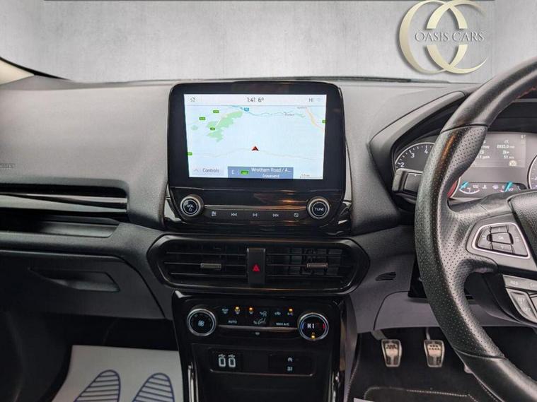 This Ecosport ST-Line is a stunning example! It comes with sat nav, dab radio, parking camera, sensors, Bluetooth handsfree multimedia and more!, We are an AA trusted dealer, with a 5* rating, We offer part exchange, finance, and AA Warranty. Get more for lessall the below features come included as standard on every car. We offer a minimum 3 month comprehensive and complimentary warranty nationwide with the option to extend up to 3 years. All cars come with a minimum of 6 months MOT as per our AA dealer promise. We offer 12 months complimentary roadside assistance and a 150 point pre-delivery inspection. For more information or to schedule a test drive, contact us & Drive away in style today!, * We offer Click & Collect * A home delivery service *All Part Exchanges welcome *, * We offer a collection service from the nearest public transport location on the day that you collect your new vehicle *, Our phone lines are open until 9pm every evening. All vehicles are supplied with a minimum of 1 working key. Specification data is populated automatically via a third-party source. Oasis Cars Ltd accept no responsibility for any errors in this data. If there is a particular vehicle feature that will affect your choice in vehicle, please contact a member of our sales team, who will be more than happy to confirm this for you. dealer's website / 01474892831