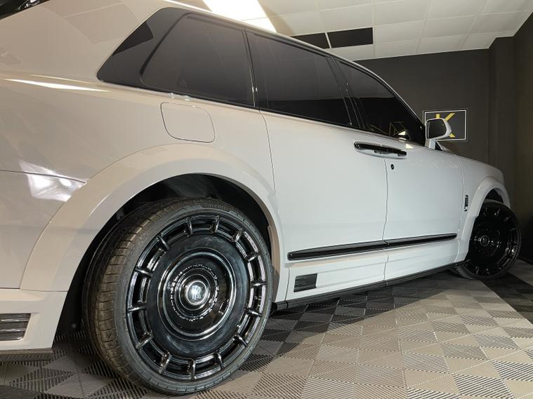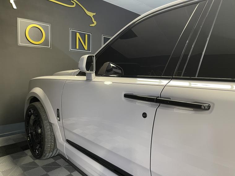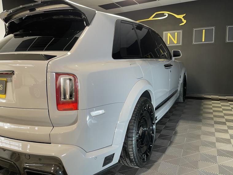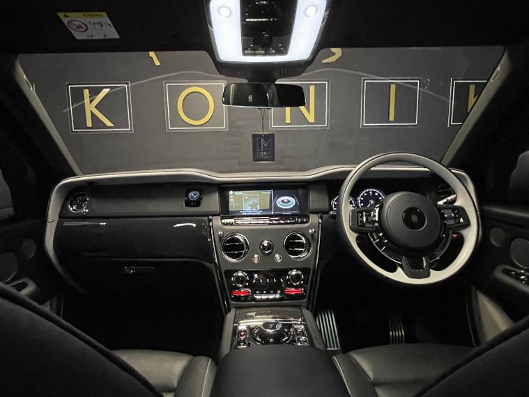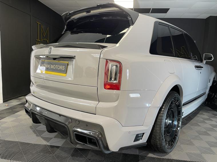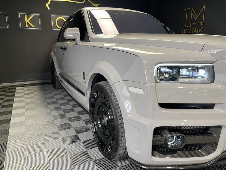 Ikonik Motors present this stunning 2023 Rolls-Royce Cullinan black badge, accompanied with an Urban kit, offering all of the style and presence of a Cullinan, with an added aggressive look. The exterior presents in an elegant, flat light grey tone that gives the Cullinan a purposeful, almost architectural presence. The deep gloss black wheels, dark window surrounds, and signature Pantheon grille create a powerful contrast against the smooth solid paint finish. The Spirit of Ecstasy stands proudly above the grille, reinforcing the unmistakable identity of the worlds most prestigious automotive marque. Inside, delivering everything expected from Rolls-Royce hand-stitched leather, exquisite veneer finishes, and an atmosphere of effortless serenity. The elevated driving position offers supreme comfort and total command of the road, while the near-silent ride quality ensures every journey is a first-class experience. Advanced technology is seamlessly integrated throughout, maintaining the perfect balance between innovation and traditional craftsmanship.