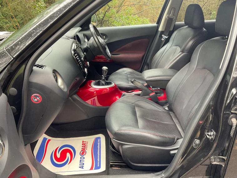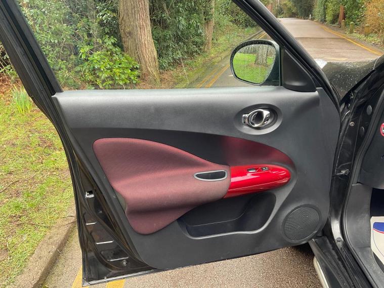 Here we have this Lovely looking 2013 Nissan Juke1.5 dCi Tekna 5 door Hatchback SUV in Sapphire Black Metallic, with Anodised Red Metallic Accents, Complimented with Black Leather trim with Red Stitching. 57, 000 Genuine miles, Full Service History, all stamped up with 6 Service Stamps, plus lots of Servicing Bills & Receipts, Pre MOT Certs. 1 Lady Owner From New. 2 Keys, Looks & drives superb, excellent original condition throughout. Fantastic Specification including Trip Computer, A/C, Radio Cd Stereo, SatNav, Electric Windows & Mirrors, Remote Central Locking alarm immobiliser, 6 Speed Manual Gearbox. Alloys, Chrome Side Bars, Cruise Control, Reversing Camera, 12 Months MOT. 165 Per Year Road Tax. Insurance group 13E. Making this an ideal family car. Looks & drives Superb, Excellent original condition throughout. Viewing & Test drive is highly recommended, as this is in superb condition, & has been maintained to a very high standard. For the fastest response or more information, please contact us on Whatsapp: 01616232128. Apply for finance: https:/ dealer's website - Reserve for 99, UK Wide delivery is available, with free delivery within 40 miles. Additional pictures can be found on our website at: dealer's website We offer a range of services including finance options, accepting debit and credit cards, bank transfers, MOTs, part exchanges, delivery and collection, finance settlements, and Hpi reports. There are several reasons to buy from us, including being an AA trusted dealer, having 5-star Auto Trader reviews, offering click and collect, welcoming AA and RAC inspections, considering good or poor credit history for finance options, providing same day drive away, and offering 12 months of free AA breakdown cover. Our location is at Cheadle Car Sales Ltd, Unit 8, Brookfield Road, Stockport, SK8 2PN. To apply for finance, please visit: https:/ dealer's website really