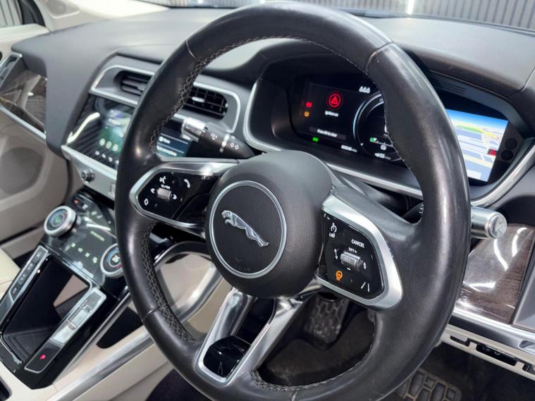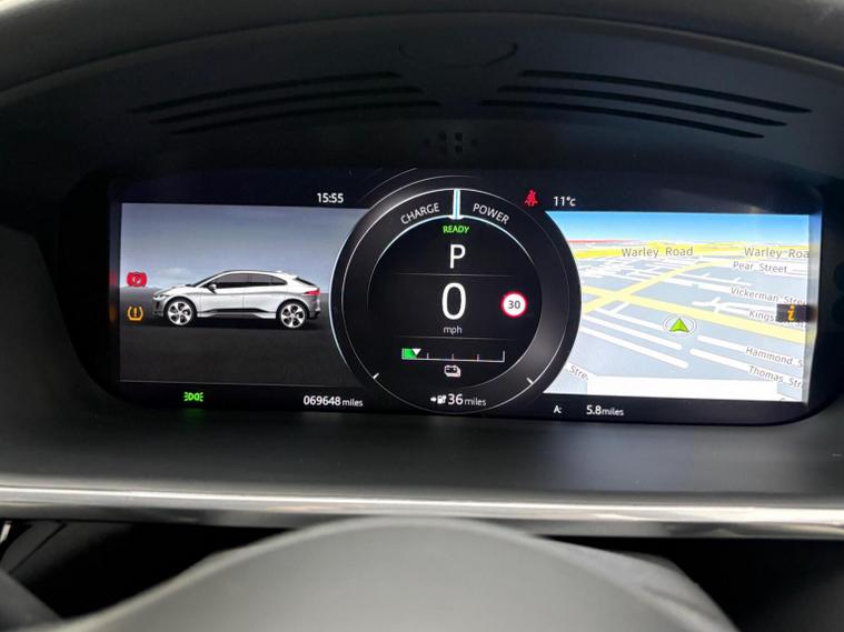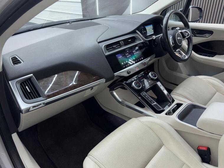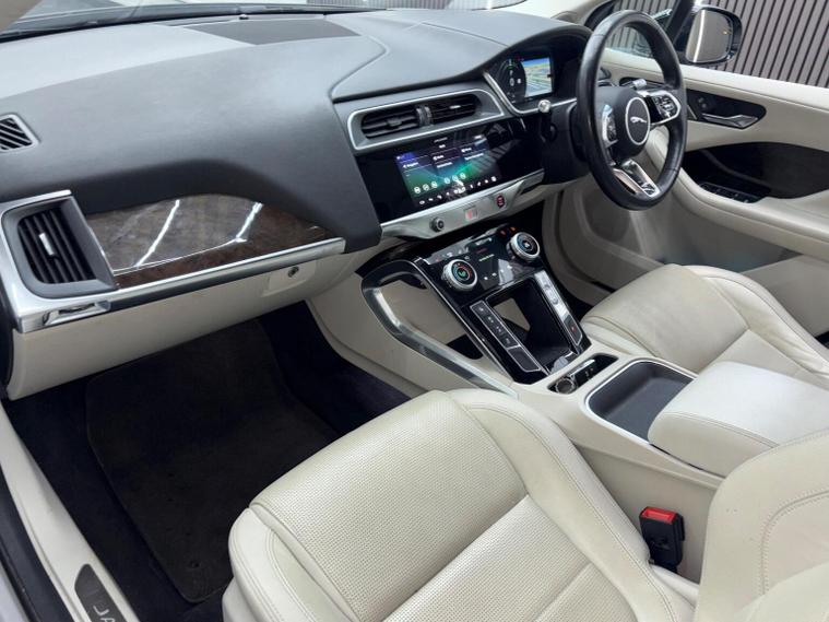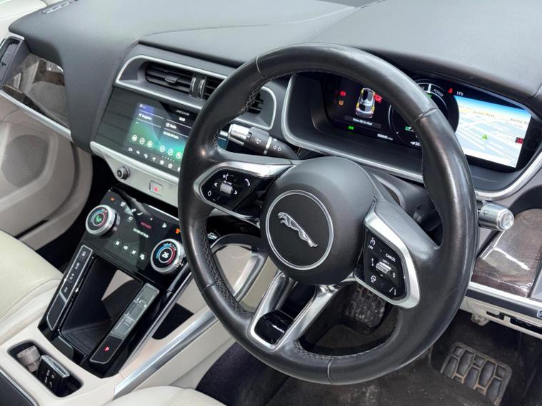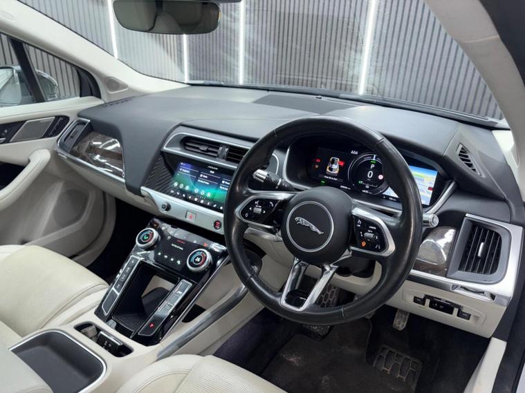 This 2019 Jaguar I-PACE 400 SE offers an exceptional electric driving experience with its impressive 292 mile maximum range from new. As a fully electric vehicle, it features a substantial 90 kWh battery, providing ample power for your journeys. This Four Wheel Drive model boasts a swift 0-60mph acceleration in just 4.5 seconds, demonstrating its dynamic performance. Charging is convenient, with a full charge at home taking approximately 12 hours and 36 minutes using a 7kW charger, and a rapid 50 minutes to reach 80% charge at a public charging station. The SE trim level is well appointed, featuring luxurious Windsor Leather in Siena Tan with an Ebony interior and Performance Seats. Comfort is paramount with 14 way heated and cooled electric memory front seats, complemented by heated rear seats. The Driver Assist Pack enhances safety and convenience, while the fixed panoramic roof floods the cabin with natural light. You will also appreciate the generous boot space, making it practical for everyday use and longer trips. These features collectively highlight the I-PACEs superior offering compared to other vehicles in its class.