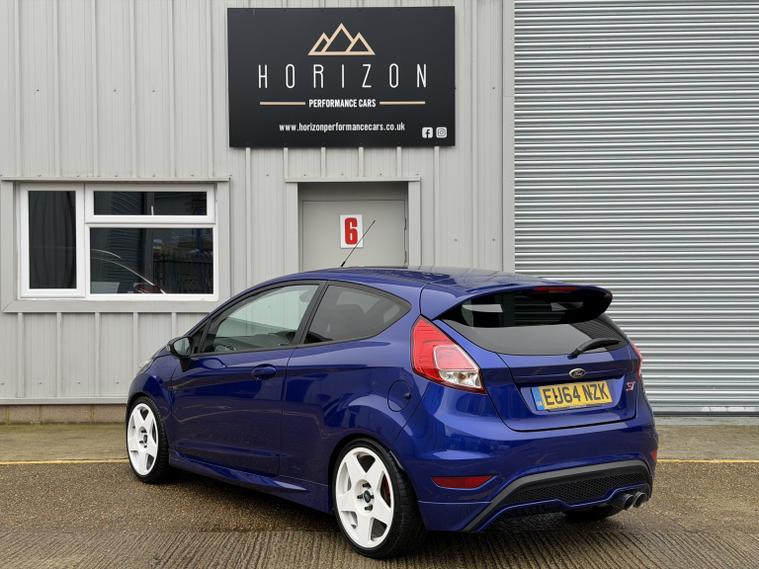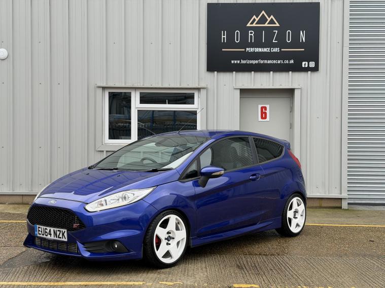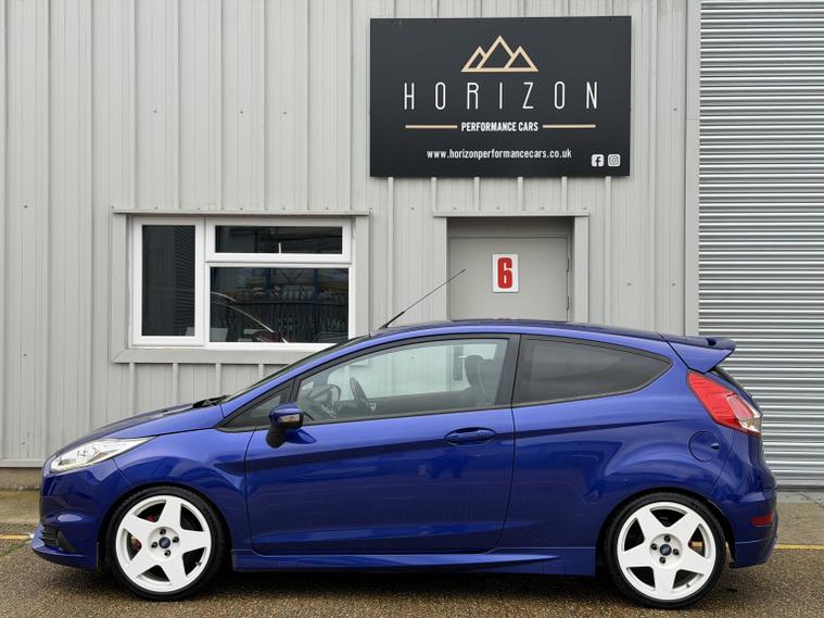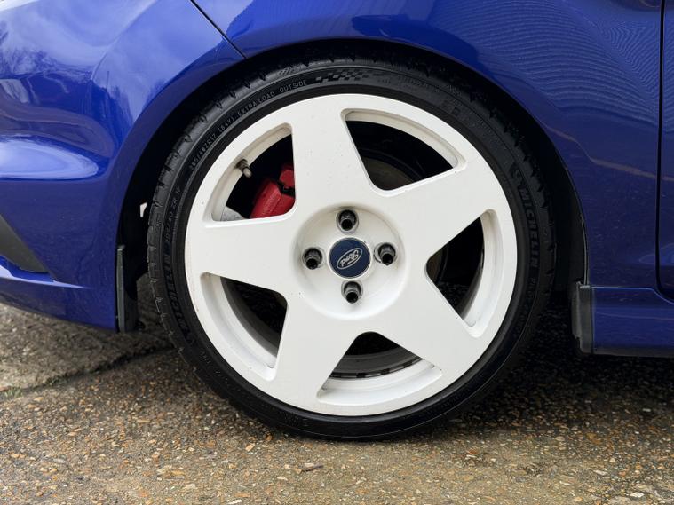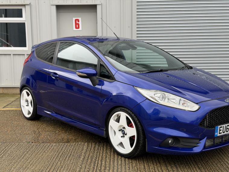 Ford Fiesta ST3, 2014 (64), 70, 000 miles, service records (just serviced), HPI clear, 2 keys, long MOT, 3 month warranty. A stunning example of these very desirable ST3s. Finished in Spirit blue with white Bola wheels it looks absolutely stunning (white not your colour? Choose any wheel colour for 299 + VAT). We bought the car directly from its previous owner who was part exchanging it after 4 years of ownership for a Focus RSwe had in stock. The condition of the car is stunning, all four alloy wheels are in good condition and all four tyres have lots of life remaining and are a premium brand. Mechanically it is excellent too, it drives superbly. Tastefully modified, this car benefits from: Bola B1 wheels with Michelin tyres, Pumaspeed stage 1 remap, Milltek cat back exhaust, Pumaspeed intercooler HSD coil overs, Vudu hard pipe hot side boost pipe, ST200 clutch, Powerflex rear subframe bushes, Powerflex front roll bar bushes, Powerflex engine mount bushes. The spec on this ST3 is very desirable as well: Recaro seats, powerfold mirrors, satnav, keyless entry and start, electric windows and mirrors, auto lights, Bluetooth, duel zone climate control and lots more. A lovely example all round, if you are looking for a well specd, stunning example, you wont be disappointed with this one. Viewings are by appointment only, part exchange and finance are both possible, we can also deal with you remotely should you wish by providing part exchange valuations, remote finance and paperwork signing. All cars are supplied with a 3 month warranty. 7, 250