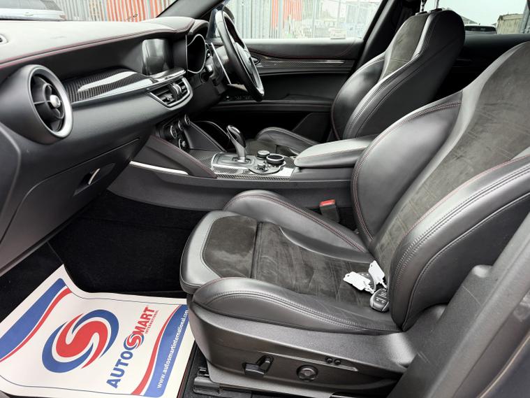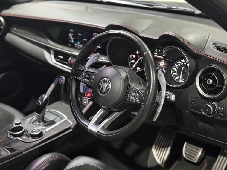This 2019 Alfa Romeo Stelvio V6 Bi Turbo Quadrifoglio boasts an MOT valid until September 2026, offering peace of mind for the coming years. Under the bonnet, a powerful 2.9 litre petrol engine paired with four wheel drive delivers exhilarating performance. This Euro 6 compliant vehicle also features a spacious boot, perfect for your luggage or shopping needs. Inside, you will find a host of convenient features including active cruise control for relaxed journeys, an electrically adjustable seat pack with heated seats and a heated steering wheel for ultimate comfort, and automatic headlights that activate with the dusk and rain sensors. Keyless entry for both driver and passenger doors adds to the ease of use, while dual zone automatic air conditioning ensures a pleasant cabin temperature for everyone. The Quadrifoglio variant truly stands out, particularly with its impressive acceleration of 0 to 62 miles per hour in just 3.8 seconds, a figure that demonstrates its superior performance compared to many other vehicles in its class. This exceptional speed is complemented by the advanced technology and comfort features designed to enhance every drive, making this Alfa Romeo Stelvio a compelling choice for those seeking both practicality and thrilling driving dynamics.