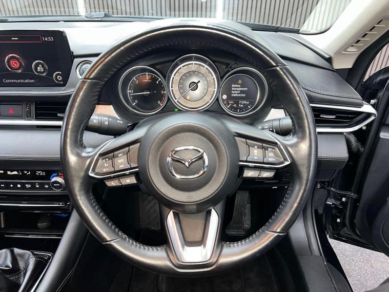 This 2019 Mazda6 SKYACTIV-D Sport Nav+ offers an exceptional blend of style and efficiency, making it a standout choice. Powered by a robust 2.2 litre Euro 6 diesel engine, this Sport Nav+ variant is equipped with advanced LED headlights that automatically adjust their level for optimal visibility. Inside, youll find comfort is paramount with heated front seats offering three stage settings and dual zone climate control to keep everyone comfortable. Stay connected on the go with integrated Bluetooth, and navigate tight spaces with ease thanks to front and rear parking sensors. This Mazda6 is designed to be economical to run, boasting an impressive fuel economy of 55 miles per gallon. Its low CO2 emissions and placement in a low insurance group further highlight its cost effectiveness compared to similar vehicles. These factors combine to make this Mazda6 a sensible and appealing option for drivers seeking a well equipped and efficient car.