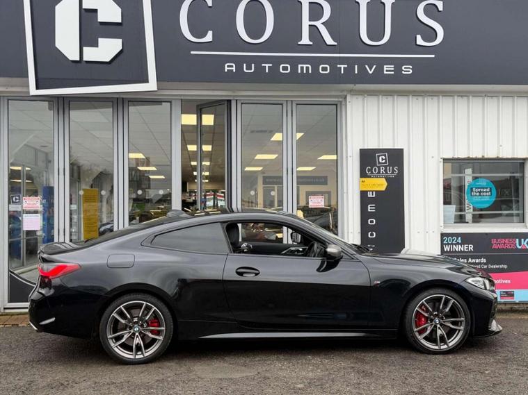 This 2022 BMW 4 Series M440i represents a superb example of its kind, having been cherished by only one owner since new. It boasts a powerful 3.0L Petrol Hybrid engine, paired with a sophisticated Four Wheel Drive system, all while adhering to the Euro 6 emission class. Inside, youll find the luxurious BMW Individual Extended Merino Leather in Black, complemented by the Comfort Plus Package which includes Keyless Entry, Seats with Memory function, and a Heated Steering Wheel for those colder mornings. The Technology Plus Pack enhances your driving experience with a Premium Branded Sound System and a 360 Degree Camera for effortless parking. Further enhancing its appeal, this M440i is equipped with Parking Assistant Plus, offering front and rear sensors and cameras for complete peace of mind when manoeuvring. The inclusion of PDC Park Distance Control further aids in navigating tight spaces. This vehicle offers a generous boot space, making it practical for everyday use and longer journeys. Additionally, its position in a low insurance group indicates that running costs are kept impressively reasonable compared to similar vehicles, making it an attractive proposition for a wide range of drivers. This car comes with full service history and has just had a fresh service by ourselves and a 200 point health check in our workshop. Included in the preparation we also do a full electronic diagnostic health check with a printout for peace of mind. We have also had the car through our bodyshop for inspection and quality checks, All our cars come fully valeted including a full polish and wax. Please contact a member of our team to arrange a private viewing appointment at our forecourt in Retford, Nottinghamshire . With all main dealership facilities, we offer extremely competitive part exchange prices, finance options and nationwide delivery at a time convenient to you!, # Every Vehicle comes with 3 months warranty as standard and breakdown cover and a full Hpi Certificate # please check specifications prior to purchase no