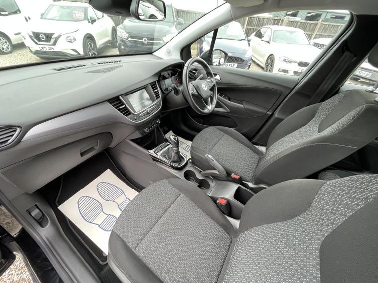 Essex Car Fleet are delighted to present this 2021 71-reg Vauxhall Crossland 1.2 SE, finished in smart black and having covered just 27, 200 miles. Offering excellent practicality, low running costs and a strong level of standard equipment, this Crossland is an ideal choice for families and commuters alike. This SE model sits on 16in five twin-spoke bi-colour diamond cut alloy wheels and features LED headlights, LED daytime running lights and LED side repeat indicators for a modern look and enhanced visibility. Body colour front and rear bumpers, body coloured door handles, black upper window mouldings, black door mirrors with twin electrically adjustable and heated functionality, an integrated tailgate spoiler and tinted, solar heat absorbing windows and windscreen all contribute to its stylish yet practical design. Rain sensitive windscreen wipers, intermittent rear wash-wipe, heated rear window and manual headlight levelling system further enhance everyday usability. Inside, the cabin is well laid out with a black facia featuring silver trim inserts and black trim inserts on the front doors. The multimedia infotainment system with 7in touchscreen and central facia display keeps you connected and informed, supported by a front USB connection, electronically protected audio equipment and steering wheel mounted audio, phone and cruise controls. A driver information display, multi-function trip computer, speedometer and rev counter, fuel gauge with low fuel warning light, water temperature gauge with warning light and shift up indication light ensure all key driving data is clearly presented. Comfort and convenience are well catered for with air conditioning, air recirculation system, four adjustable facia vents, multi-speed fan, illuminated controls, automatic lighting control and an automatically dimming anti-dazzle rear-view mirror. The drivers seat offers four-way adjustment, the front passenger seat has two-way adjustment and both front seats benefit from height-adjustable head restraints, with additional height-adjustable head restraints on the outer rear seats. Illuminated vanity mirrors with flip-up covers, central front and rear courtesy lights, interior lighting with fade up and fade down, a fully carpeted luggage area with illuminated luggage compartment, luggage area cover and foldable luggage compartment cover, front and rear door pockets with bottle holders, two drinks holders in the centre console, glovebox with lid and open storage compartment in the centre console provide excellent practicality. The rear seats split and fold 60-40 to maximise load space when required. Safety is comprehensive, with ABS anti-lock braking system, EBD electronic brakeforce distribution, ESP electronic stability programme, traction control, corner stability control, engine drag torque control, hydraulic brake assist and hydraulic brake boost all working together for confident handling. Hill start assist, lane departure warning and speed sign recognition add further reassurance on the move. Protection is enhanced by driver and front passenger airbags, front seat side-impact airbags and full size curtain airbags, along with a deactivation switch for the front passenger front and side impact airbags. Dual seatbelt pretensioners on the front seats, pretensioners on the outer rear seatbelt retractors, load limiters on front and outer rear seatbelt retractors, inertia-reel lap and diagonal seatbelts and a smart seatbelt reminder system for front and rear seats all contribute to occupant safety. Additional features include anti-submarining ramps in the front seats, reinforced passenger safety cell, side impact protection beams, deformation zones front and rear, child proof locks on rear doors and ISOFIX child seat mountings with top tether anchor points on the outer rear seats. Further highlights include cruise control with speed limiter, speed sensitive power assisted steering, remote control central locking, engine deadlock immobiliser, V