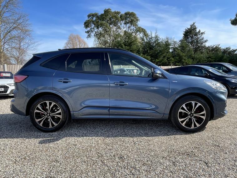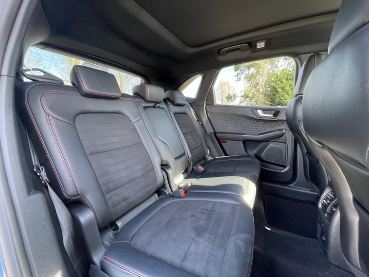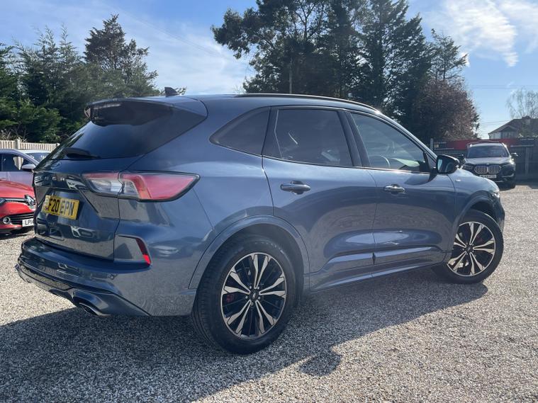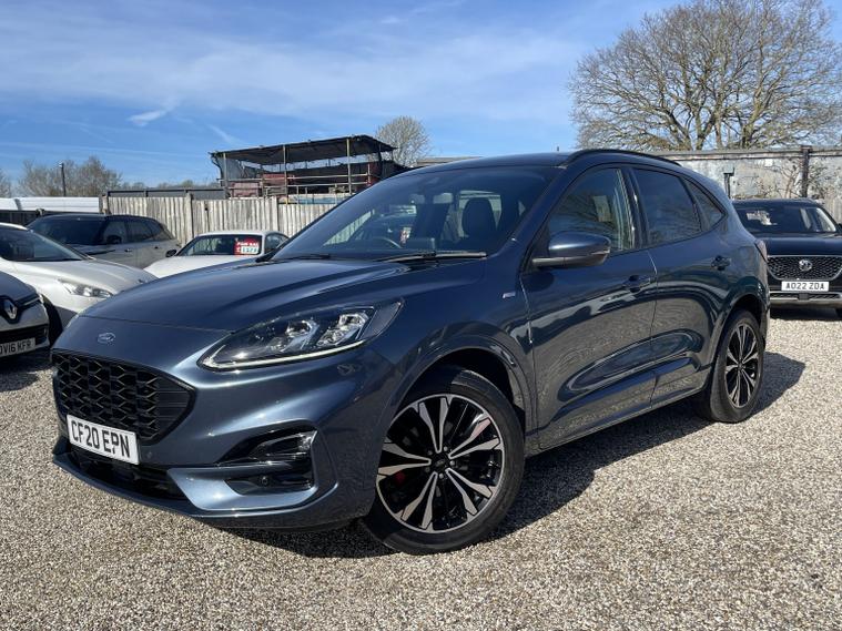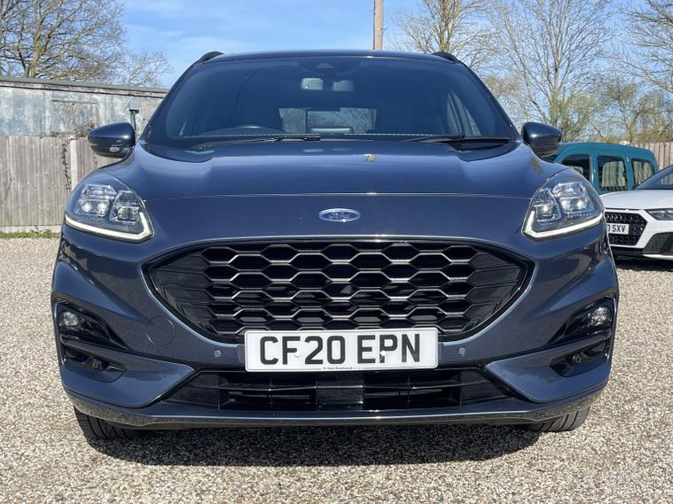 Essex Car Fleet are delighted to present this 2020 20 Ford Kuga 2.0 EcoBlue ST-Line X with 37, 190 miles, finished in the stunning Chrome Blue. This range-topping ST-Line X model combines sporty styling, advanced technology and everyday practicality, delivering an exceptional driving experience with impressive efficiency from the 2.0 EcoBlue engine. The exterior makes a bold statement with 19in 5x2 spoke alloy wheels in Black Ebony with a machined finish, red brake calipers, black roof rails, large rear spoiler and the distinctive ST-Line bodystyling kit. LED daytime running lights, front LED fog lights with cornering function and automatic on-off headlights enhance visibility, while heated and power folding door mirrors with puddle lights, privacy glass and rear LED lights complete the premium look. The handsfree power tailgate adds convenience, and the Quickclear heated windscreen together with rain sensitive wipers ensure clear vision in all conditions. Inside, the cabin reflects the ST-Lines sporty character with alloy foot pedals, a flat bottom Sensico steering wheel with red stitching, dark headliner and pillars, woven headliner trim and ST-Line front scuff plates. Sports seats provide excellent support, with the driver benefitting from 10-way power adjustment and additional 8-way adjustment, while the passenger seat offers 4-way adjustment. Heated front seats, dual-zone electronic automatic temperature control and a sliding second row of seats ensure comfort and flexibility for all occupants. Practical touches include front and rear floor mats, a centre console, tonneau cover, tie-down hooks, 12V power socket in the load compartment and a 230V power converter. Technology is a real highlight, featuring the Ford SYNC3 navigation system with Ford DAB audio and the premium Bang and Olufsen sound system for an outstanding in-car entertainment experience. FordPass Connect keeps you seamlessly connected, while wireless charging, paddle shift, cruise control with adjustable speed limiter, intelligent speed assistance and selectable drive modes enhance every journey. The 4.2in colour TFT instrument cluster display keeps key information clearly in view, and the Ford Key Free system with keyless entry and keyless start, along with the Ford power starter button, add everyday convenience. Safety is comprehensive and reassuring, with anti-lock braking system, electronic stability control, emergency brake assist, post collision braking and pre-collision assist with autonomous emergency braking. Lane keeping aid with lane departure warning, driver impairment monitor and the intelligent protection system further support driver awareness. The vehicle is equipped with front and rear parking sensors, powered child proof rear door locks with global closing, ISOFIX mounting provision for child seats on the outer rear seats, tyre pressure monitoring system and multiple airbags including driver, passenger, drivers knee and front and rear side curtain airbags. Additional features include EPAS electric power assisted steering, electric parking brake, auto start-stop system, MyKey Gen II, engine immobiliser, Thatcham Category 1 alarm, remote power central double locking doors, locking wheel nuts, electrically operated front and rear windows with one touch lowering and closing on the drivers side and global closing, sports suspension with independent front MacPherson struts and rear control blade multi-link system with anti-roll bars, the Ford Easy Fuel system and a tyre inflation kit. This high specification Ford Kuga ST-Line X offers dynamic styling, advanced safety and cutting-edge technology in a striking colour combination, making it a superb all-round family SUV ready for its next owner. With our location based in Battlesbridge in Essex, Enjoy haggle-free buying experience where you can drive away the same day of prior arranged appointment. Please see our website for details. Call now or enquire online for a no-obligation testdrive, finance q