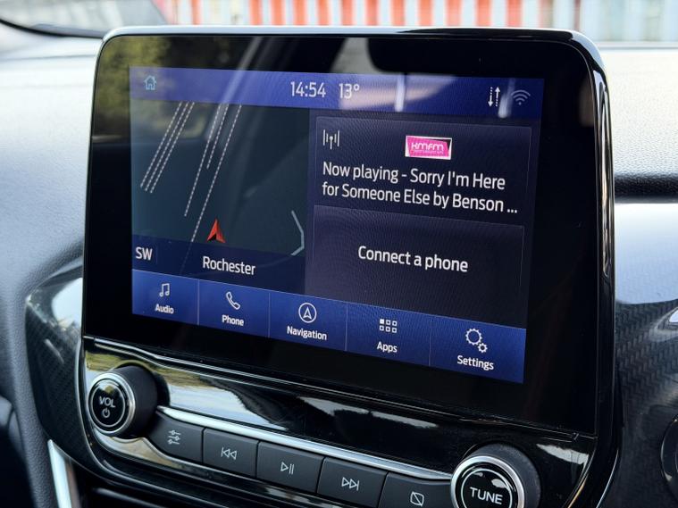 This 2021 Ford Fiesta T ST Line Edition boasts exceptionally low mileage for its age, having covered just 23, 000 miles. As a Euro 6 compliant model, it features a 1.0L petrol engine and is equipped with the NCAP Pack, including automatic headlights. For convenience, it offers rear parking distance sensors and manual air conditioning. The ST Line Edition trim also comes with a Ford Navigation System featuring Ford SYNC 3, which seamlessly integrates Apple CarPlay and Android Auto, alongside FordPass Connect embedded modem. Further enhancing visibility and safety are LED projector headlights with daytime running lights. This Fiesta T ST Line Edition offers impressive performance and efficiency, with a 0-62mph acceleration time of just 9.4 seconds. Its fuel economy is a notable highlight, achieving up to 54 miles per gallon, and it also boasts low CO2 emissions, making it a more economical choice compared to similar vehicles. The MOT is valid until February 2027, providing peace of mind for the new owner.