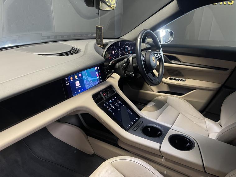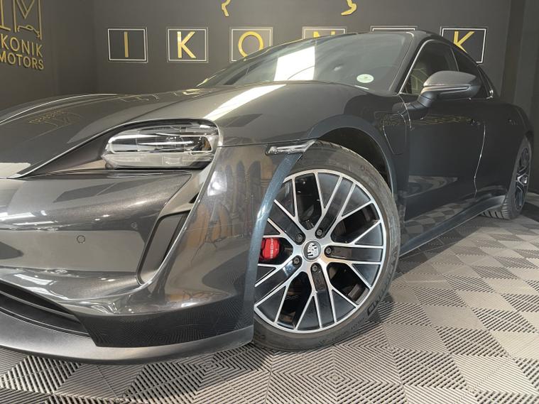 Ikonik Motors present this 2022 Porsche Taycan, a stunning example of cutting-edge electric performance delivering 255 miles of range and featuring an unmistakable Porsche design. Finished in sleek metallic grey with striking multi-spoke alloy wheels and red brake calipers, it delivers a perfect balance of luxury, innovation, and sports car presence. With its sculpted lines, low stance, and refined interior comfort, the Taycan offers exhilarating acceleration alongside everyday practicality. A true statement in premium electric driving, this vehicle combines advanced technology with the timeless performance heritage you expect from Porsche.