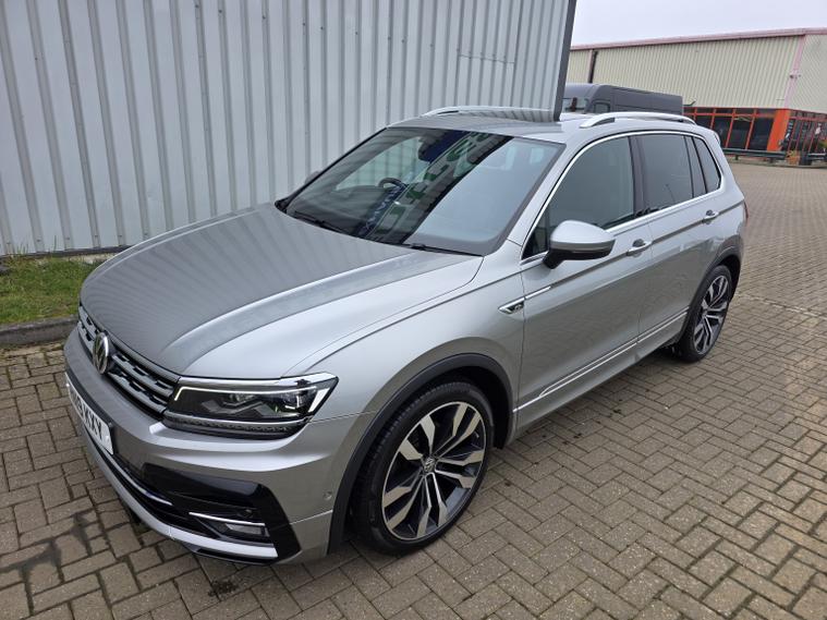 Volkswagen Tiguan 2.0 TDI R-Line Tech finished in Silver (Auto), 32744 miles with BLACK HALF LEATHER interior, only 1 previous owner. This car comes with a Full Dealership History. Only 22, 495