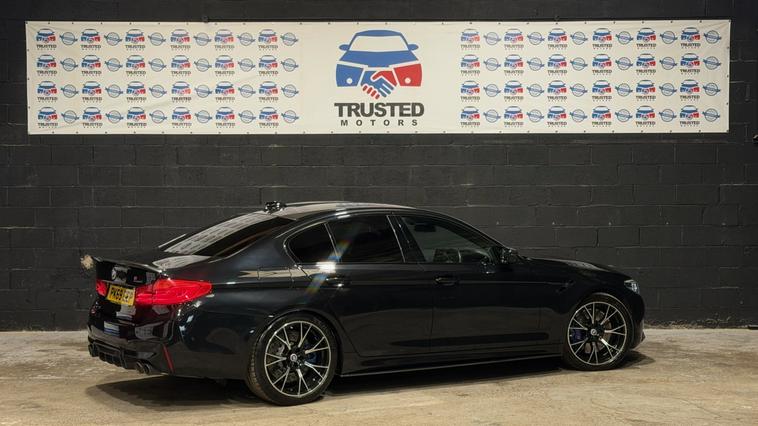 2019 BMW M5 Competition 37, 995, Available now at Trusted Motors Limited, With heaps of paperwork from BMW themselves, packing FULL BMW SERVICE HISTORY, this is seriously an impressive example of the legendary BMW M5 Competition, combining luxury, practicality and ferocious performance in one beautifully engineered package. This 2019 BMW M5 i V8 Competition is presented with an MOT valid until October 2026 and comes with a clear vehicle history check, offering real peace of mind for its next owner. Under the bonnet sits the incredible 4.4-litre twin-turbocharged V8, delivering breathtaking power through BMWs advanced xDrive four-wheel-drive system, giving the car immense grip and control in all driving conditions. The result is explosive performance, launching from 062 mph in just 3.3 seconds, placing it firmly in true super-saloon territory and ahead of many comparable performance vehicles. Finished in a stunning specification and presented in excellent condition, this Competition model offers the perfect balance between raw performance and executive comfort. The driving experience is everything you would expect from an M car precise, responsive and incredibly engaging while still being refined enough for everyday use. Despite its serious performance credentials, the M5 also offers excellent practicality, with generous boot space and comfortable seating, making it an ideal choice for those wanting supercar performance without sacrificing everyday usability. This is a sought-after performance saloon that delivers speed, luxury and presence in equal measure. Well-kept examples like this are always in high demand and rarely stay available for long. Price: 37, 995, Trusted Motors Limited, Star Iron Works, Greenacres Road, Oldham, OL4 2BT, Serious enquiries welcome. Viewing recommended.
