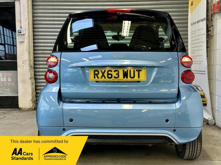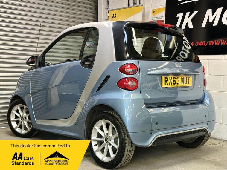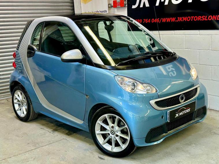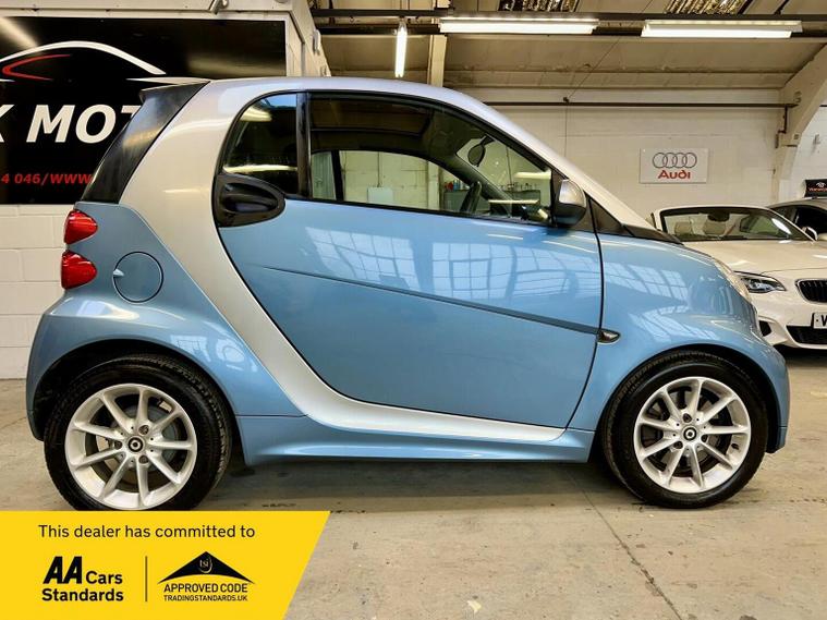 Ready to drive away today Smart fortwo 1.0 MHD Passion SoftTouch, low mileage example in original condition and recent Mercedes service and tyres all round. Finished in sky blue with silver trim and black seats. 15 alloy wheels, xenon headlights and panoramic roof add to the fun factor. Low tax and insurance group makes for an ideal city run about. Touchscreen with radio and nav, electric windows and city start stop makes for great fuel economy. Buy with confidence from an award winning, AA Approved dealership with a variety of warranty products available. Viewing available seven days a week by appointment (evening and weekends available), nationwide delivery. Same day finance decisions in house at competitive rates, nil deposit options, please inquire with a simple call to drive away today. Drive away insurance, part exchange welcome, top prices paid. Member of the Motor Trade trading standards and motoring ombudsman code of practice