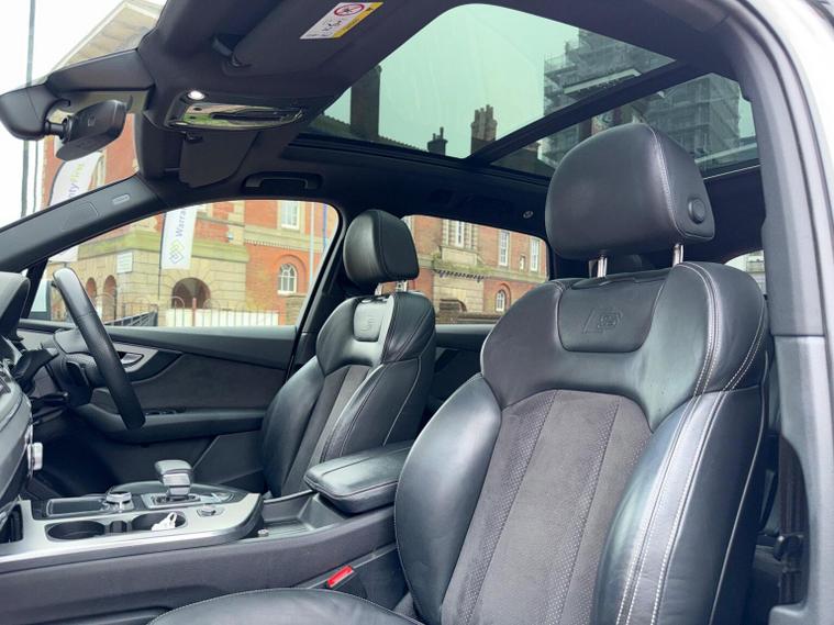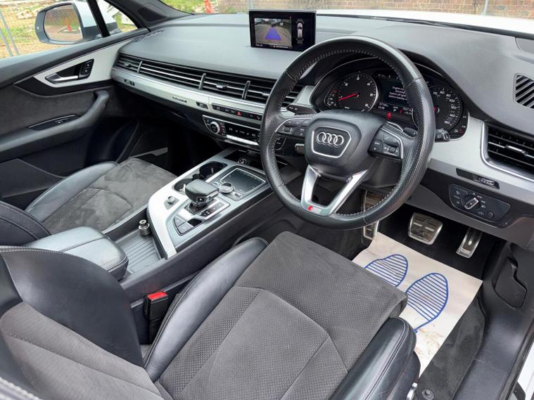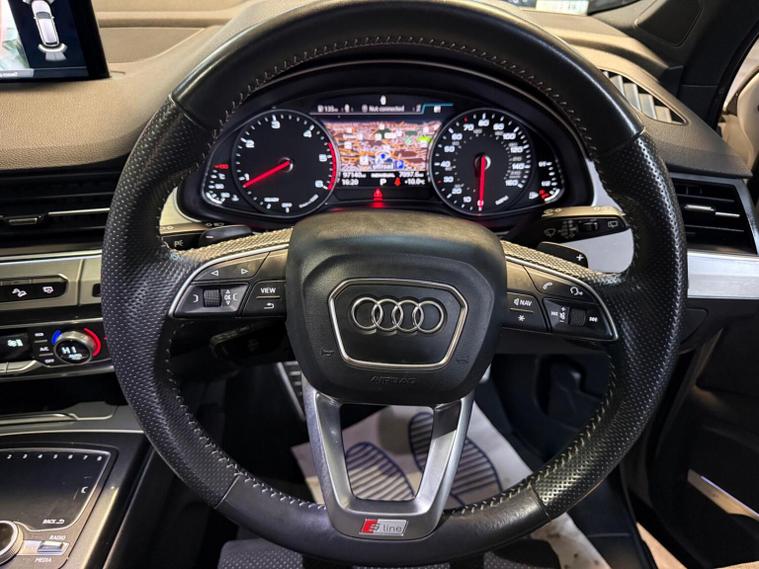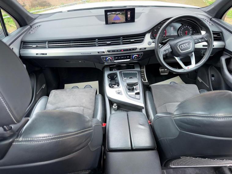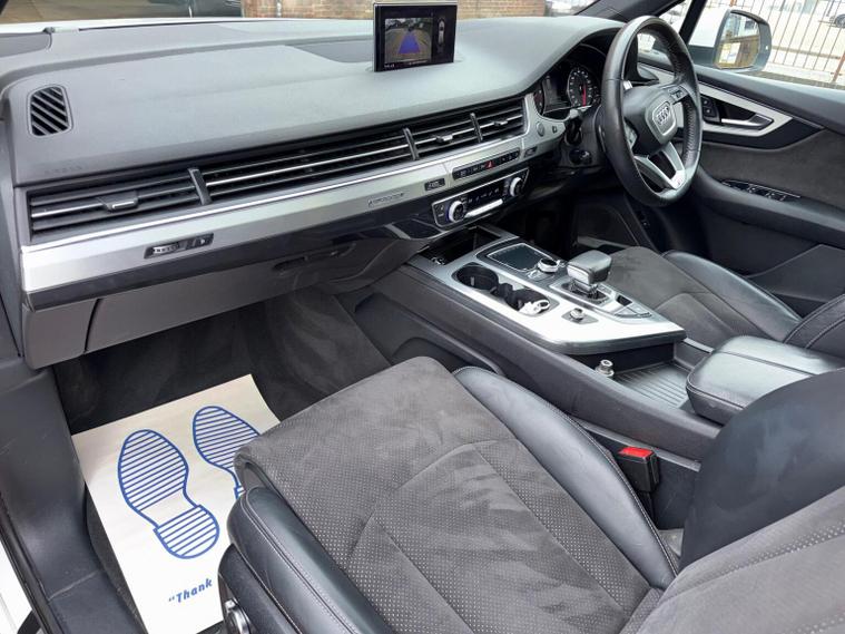 This 2018 Audi Q7 TDI V6 S line boasts a full dealership service history and has had only one owner from new, ensuring excellent provenance. This Euro 6 compliant, four wheel drive SUV features a powerful 3.0L diesel engine and offers seating for seven, making it a versatile choice for families. Notable features include a panoramic glass sunroof, a premium BOSE 3D sound system, Audi Exclusive floor mats, and the Technology Package with Bluetooth connectivity. With an impressive fuel economy of 49 mpg and a brisk 0-62mph acceleration time of just 7.3 seconds, this Q7 offers a compelling blend of performance and efficiency that stands out from similar vehicles. It also benefits from a 2800 kg towing weight, a clear vehicle history check, and will be supplied with 12 months MOT and a 6 month warranty for your peace of mind. Its low insurance group rating further enhances its appeal as a practical and economical luxury SUV.