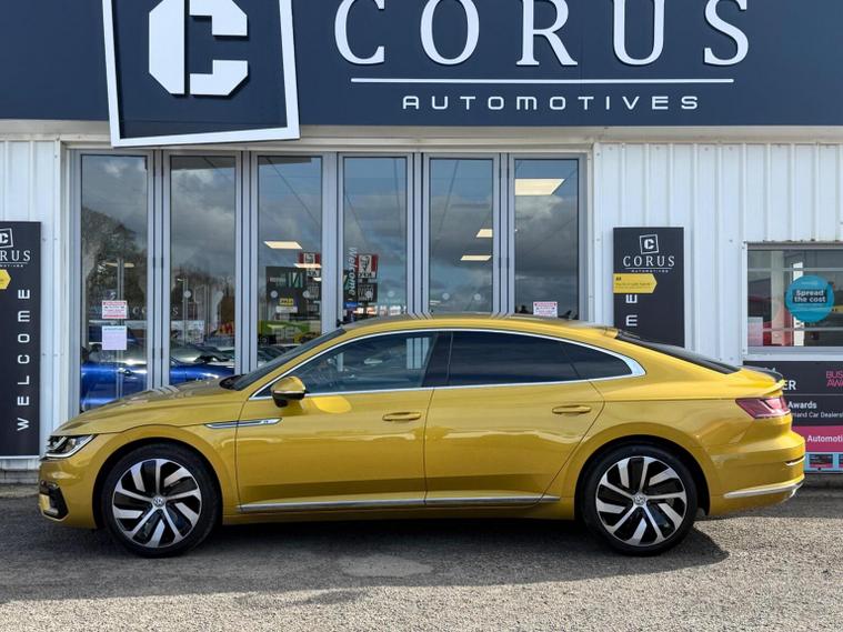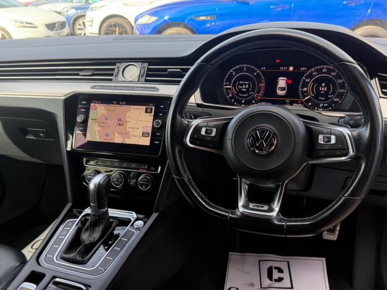 This 2017 Volkswagen Arteon TDI R-Line boasts a clear vehicle history, offering peace of mind for its next owner. This stylish saloon features a powerful 2.0 litre diesel engine, meeting Euro 6 emission standards. Inside, youll find comfort and convenience with climate control and heated front seats. The R-Line trim enhances the driving experience with LED self-levelling headlights that activate automatically thanks to the dusk sensor, ensuring optimal visibility. Connectivity is seamless with Car-Net App-Connect, supporting both Android Auto and Apple CarPlay. The Arteon TDI R-Line offers a compelling blend of performance and practicality. Its acceleration from 0-62mph in just 9.1 seconds demonstrates its responsive nature. This vehicle stands out with its generous boot space, providing ample room for luggage or shopping. These attributes, combined with its Euro 6 compliant engine and advanced features, position this Arteon as a superior choice for those seeking a refined and capable diesel saloon.