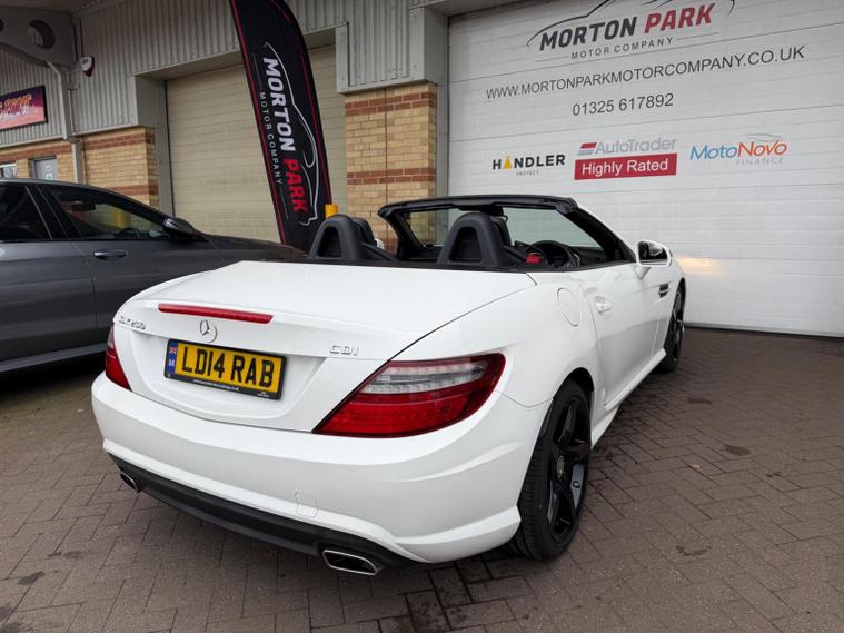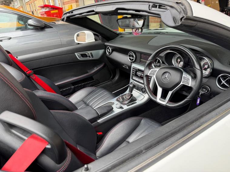 This 2014 Mercedes Benz SLK250 CDI AMG Sport boasts a clear vehicle history, offering you peace of mind. This stylish convertible features a powerful 2.1 litre diesel engine and AMG Sport trim, enhancing its dynamic appeal. For your convenience, it includes Headlamp Assist for automatic headlight activation, a Bluetooth interface for hands-free calls, and air conditioning to ensure a comfortable drive in all conditions. Experience exhilarating performance with this SLK, capable of accelerating from 0 to 62 miles per hour in just 6.7 seconds, a testament to its sporty nature. Beyond its impressive speed, this model also offers surprisingly large boot space, making it a practical choice for your everyday needs and weekend getaways. These attributes combine to make this Mercedes Benz SLK a compelling option for those seeking a blend of performance, comfort, and utility.