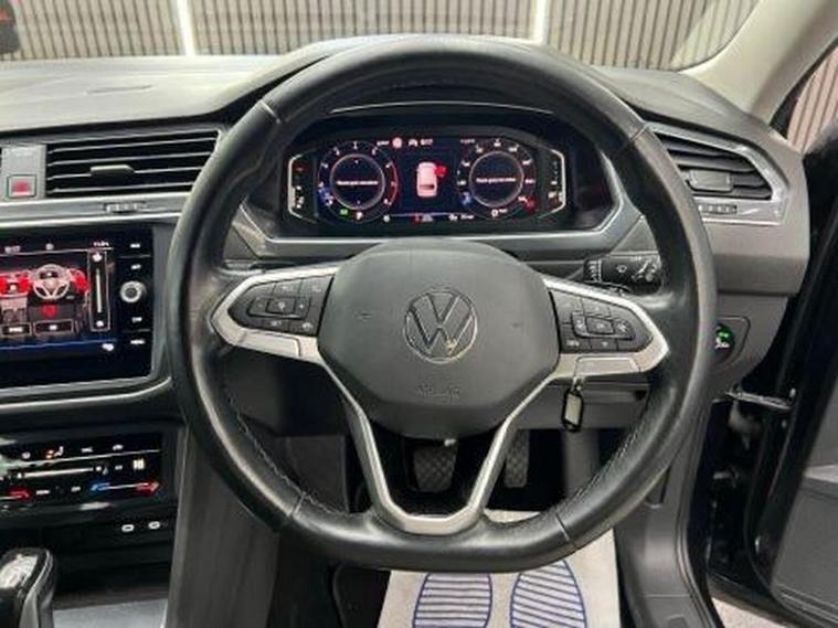 This 2023 Volkswagen Tiguan Allspace TSI Life is a superb example, having had only one owner since new. This Euro 6 compliant, 1.5 litre petrol model offers seating for seven, making it incredibly versatile. It comes equipped with the desirable Vienna Leather Package, which includes memory seats for personalised comfort. For convenience, it features the Easy Open and Close Package with SAFELOCK, allowing for keyless entry and effortless access. Navigation is handled by the Discover Navigation Pro system, complete with streaming and internet capabilities, and Bluetooth connectivity. Parking is made simpler with a rear view camera and rear parking assistance. The Tiguan Allspace TSI Life truly excels with its spaciousness, boasting a large boot space that provides ample room for luggage or shopping. This particular model also features a swivelling towbar, adding to its practicality for those needing to transport trailers or caravans. Its performance is also noteworthy, achieving 0-62mph in just 9.6 seconds, demonstrating a responsive driving experience. These highlights collectively position this Tiguan Allspace as a superior choice for families or individuals seeking a well appointed and capable seven seat vehicle.